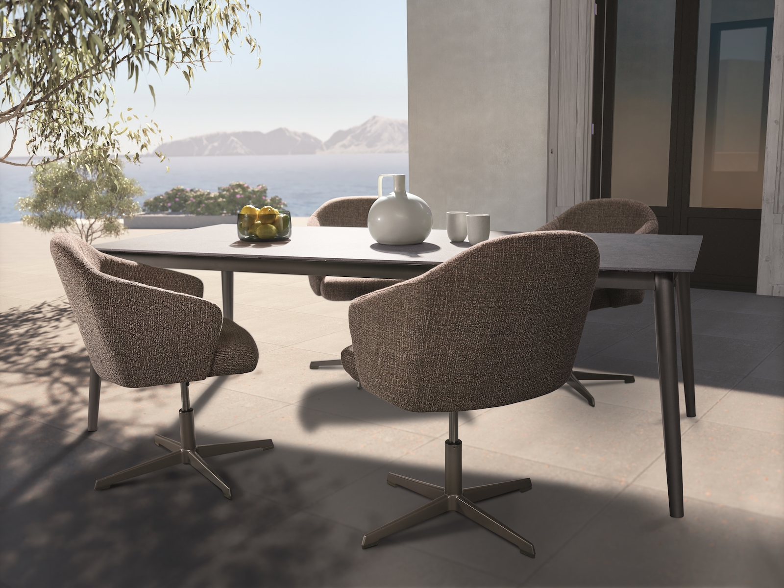 Der höhenverstellbare Dining Sessel Til von Ära by Stern ist ein sehr bequemer Outdoor Sessel für den Lounge- und zugleich für den Essbereich. Til bietet höchsten Sitzkomfort, ob bei der Arbeit am Schreibtisch, oder Dank seiner Höhenverstellung, im bequemen Loungefeeling. Die Füße sind aus pulverbeschichtetem Aluminium gefertigt. Der Schaumstoff ist schnelltocknend. Bei den Bezugstoffen setzt Ära by Stern auf die hochwertigen Q2 Stoffe der Firma Rohleder, diese sind wasserabweisend und für Allergiker geeignet.