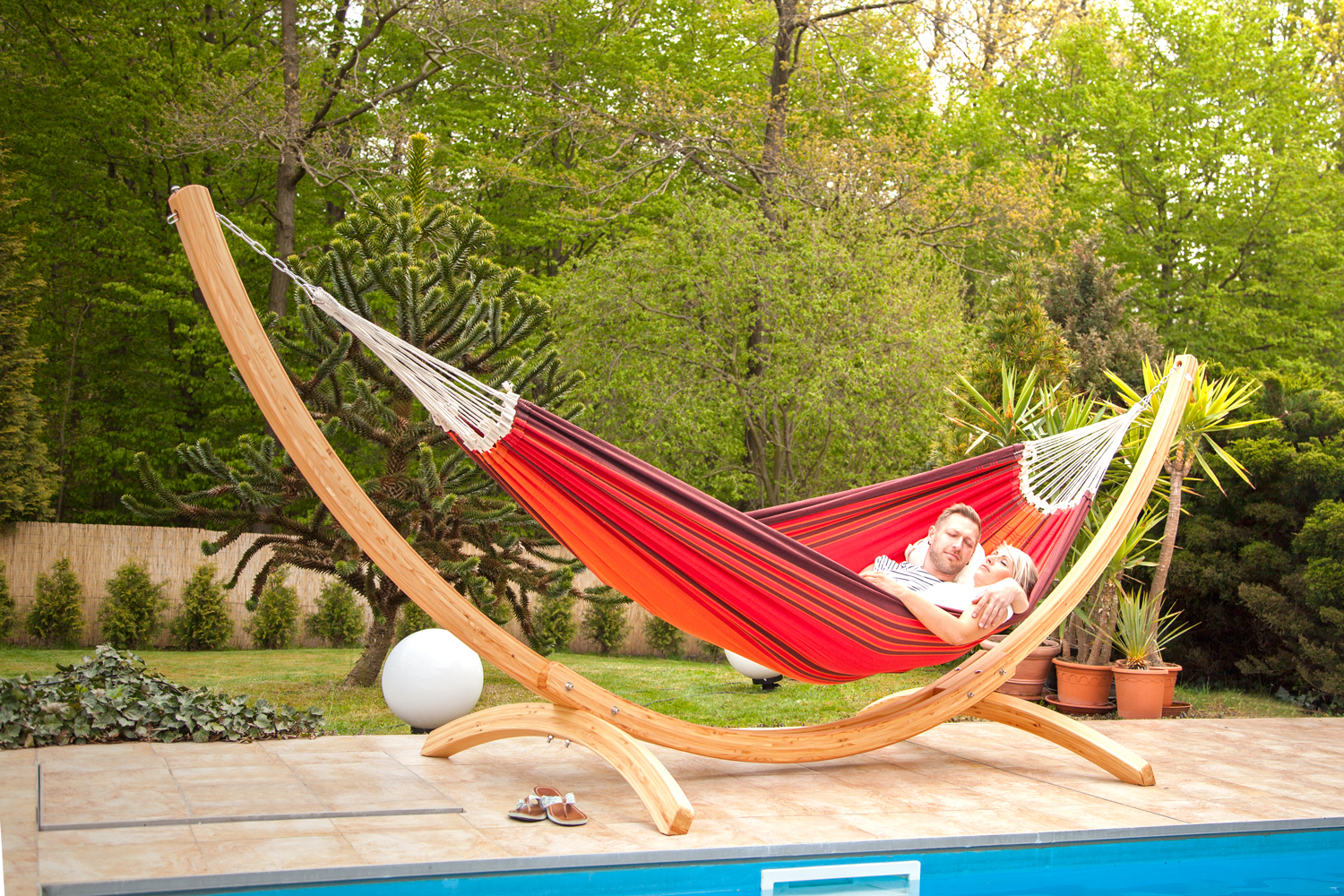 AMAZONAS Arcus – Längenverstellbares Hängemattengestell aus Holz für Ihr Hängemattenglück im Garten!