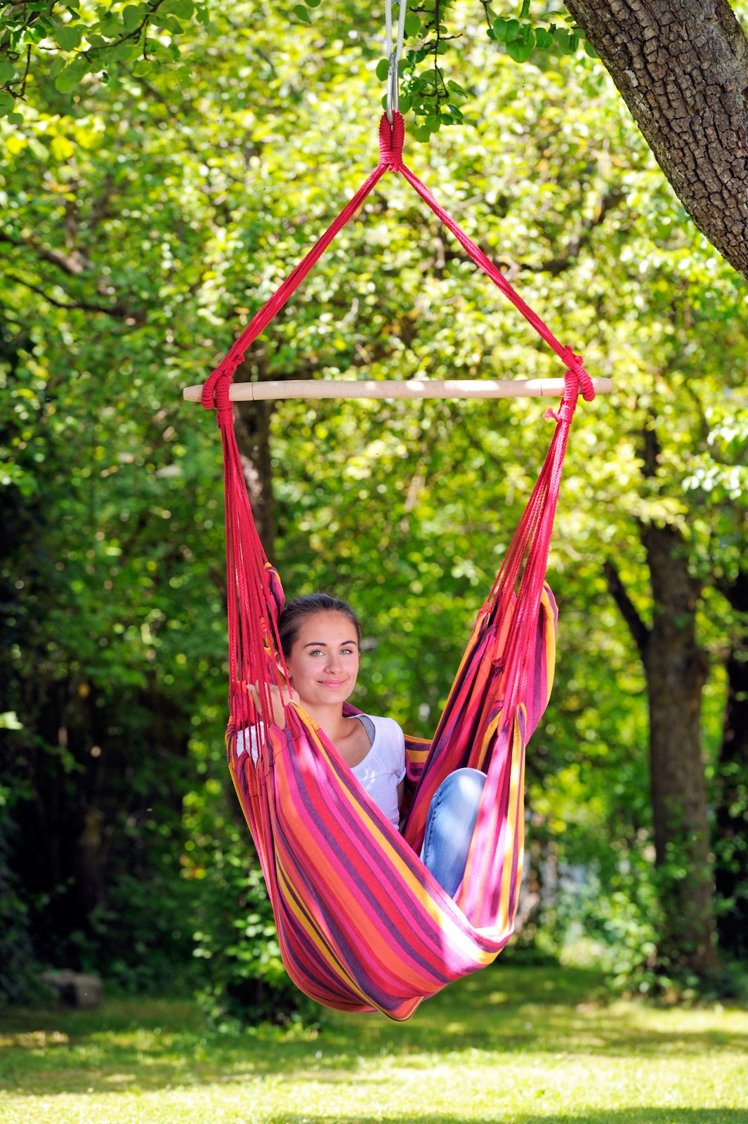 Der Hängesessel Relax ist der perfekte Ort, um einfach mal abzuhängen. Dieses leichte Möbelstück wiegt nur 1,8 kg und kann im Handumdrehen auf- oder abgehängt werden. So schwebst du mühelos über den Dingen...
