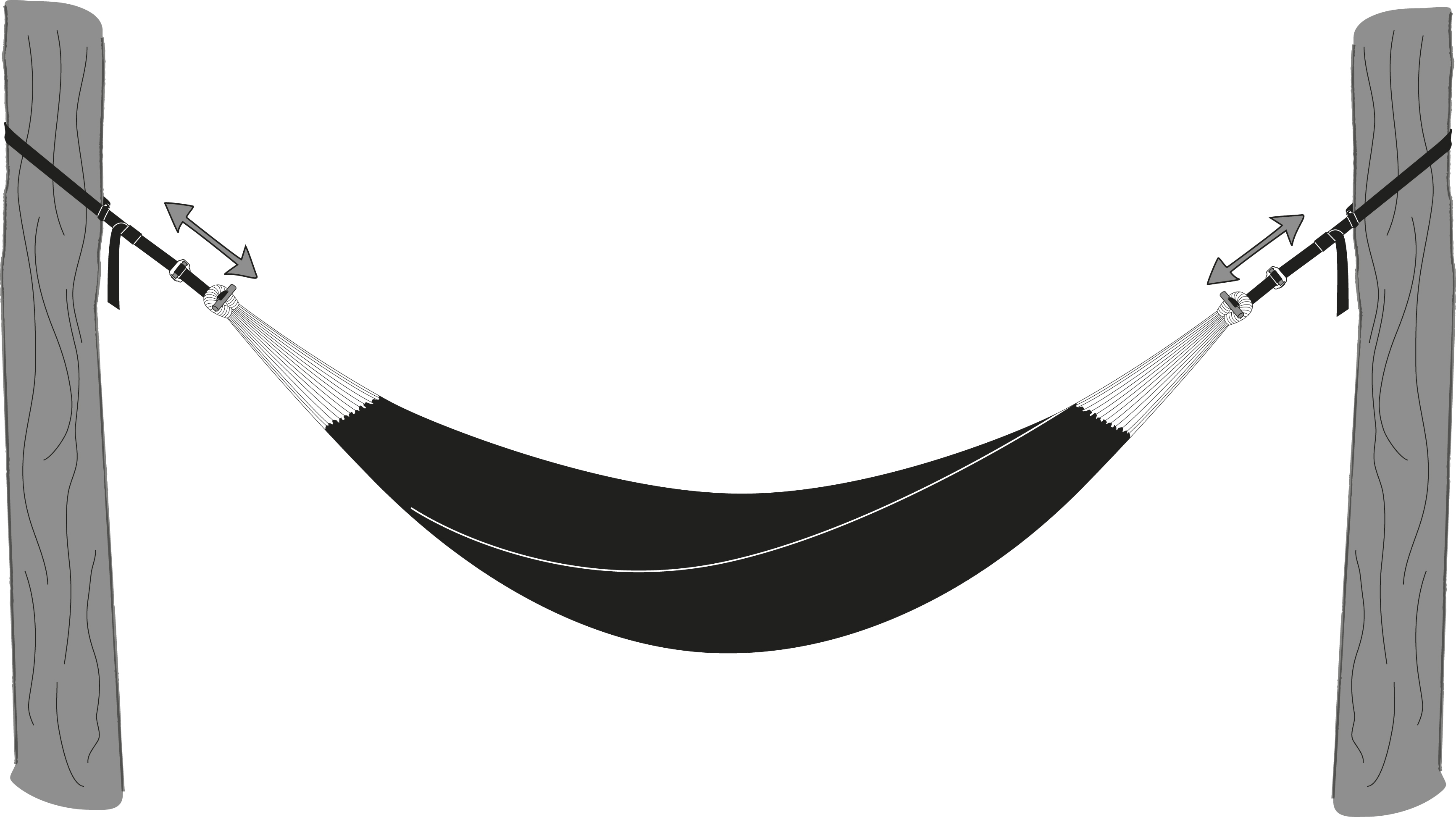 Der Haltestift aus Aluminium dient als praktische Verbindung zur Hängemattenschlaufe. Einmal durchgesteckt stellt er sich quer und hält dann richtig fest. Das 25 mm breite Band schont die Bäume. Die Gurte sind jeweils, dank der Verstellschnalle, stufenlos von 15 bis 220 cm Länge verstellbar. Insgesamt ergibt sich so ein Verstellbereich von 30 bis 440 cm.