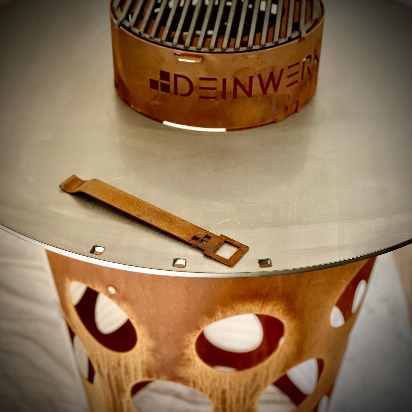 Produktinformationen "DEINWERK Dubbefass Grillfass aus Corten mit Feuerplatte, Wokaufsatz und Anstecktisch"