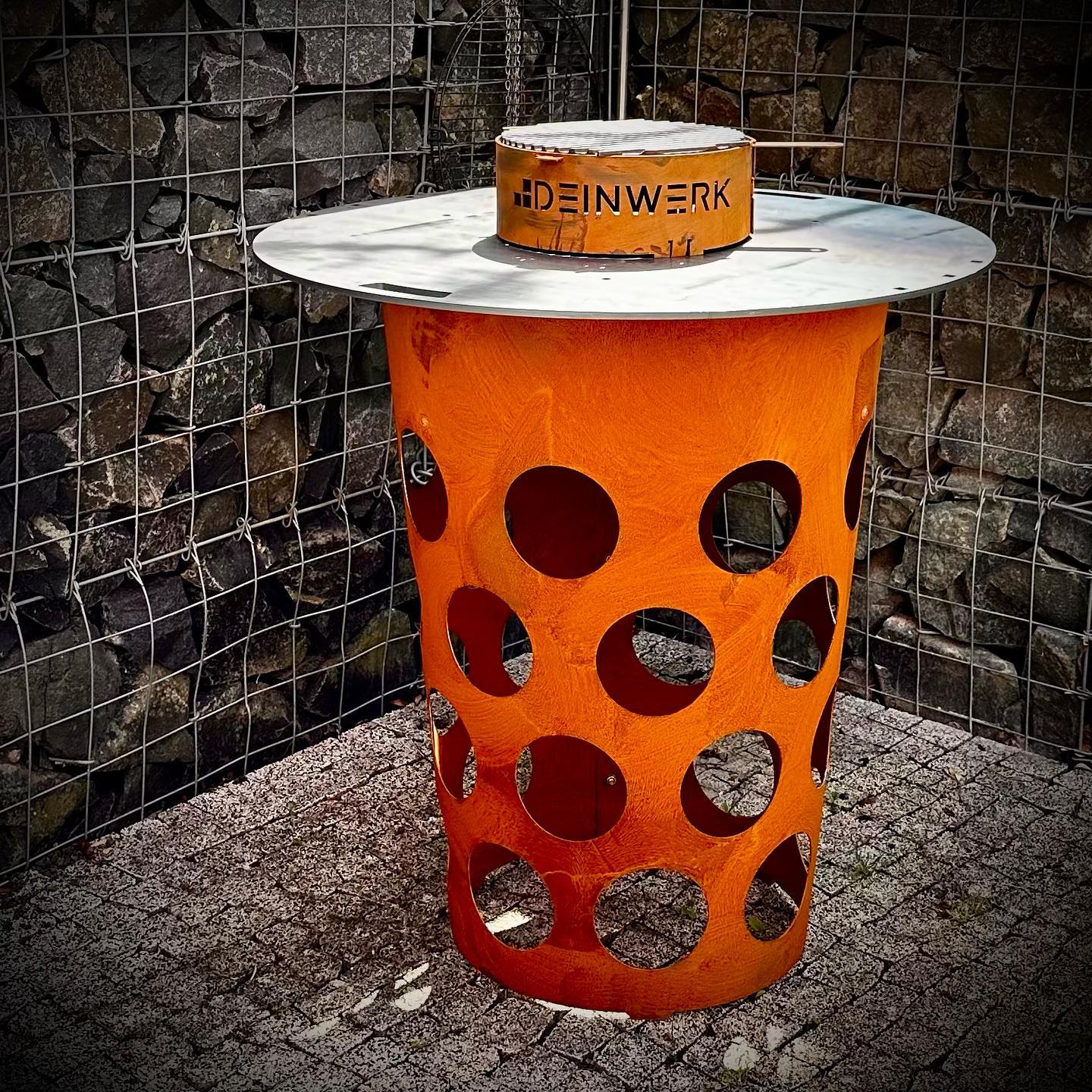 - Grilltonne mit Feuereinsatz (Corten): ca. Ø 50 cm – 62 cm | Höhe 95 cm