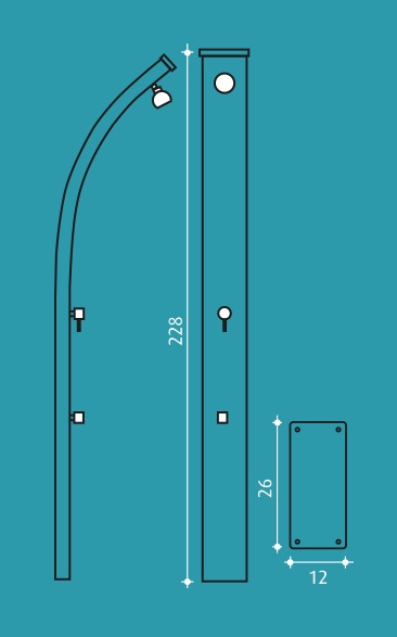 Die vollständig aus Aluminium hergestellte Außendusche Spring passt perfekt zu allen Gärten und Terrassen. Ihr gebogenes Design, ihre Eleganz und ihre Leichtigkeit machen sie zum unverzichtbaren Element für jeden Außenbereich. Sie lässt sich problemlos an jeden Wasserkreislauf anschließen. Die Wärme der Sonne genügt, um ihren 30 Liter großen Wassertank aufzuheizen, weshalb sie vollkommen ökologisch ist.