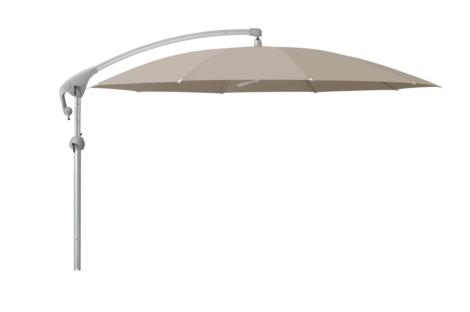 - Schirmstreben aus vergütetem Federstahl, verzinkt und pulverbeschichtet in hellgrau