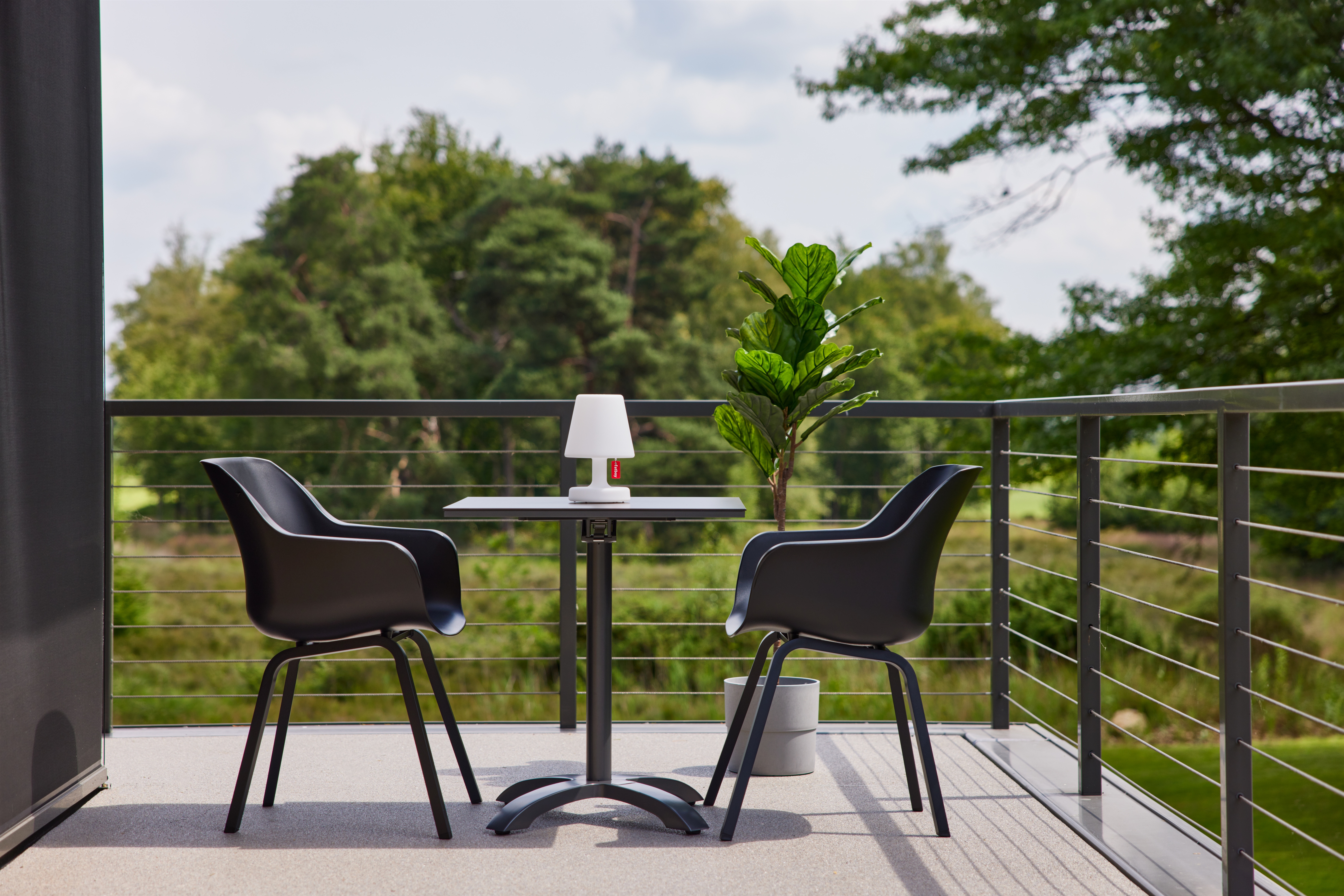 Wie Sitzen zum Erlebnis wird, zeigt dir der Sophie Element. Dieser einzigartige Stuhl aus Kunststoff und Aluminium schmiegt sich durch eine spezielle Technik unverwechselbar dem Körper an. Ein spezielles Drainagesystem sorgt dafür, dass Wasser von der Sitzfläche direkt ablaufen kann. Aber am besten testest du selber, wie gut man in diesem Stuhl sitzt! Die Ausführung als Sophie Element ist durch die klare Linienführung seines Untergestells ausgezeichnet, die dem Stuhl zudem hervorragende Standfestigkeit verleiht.
