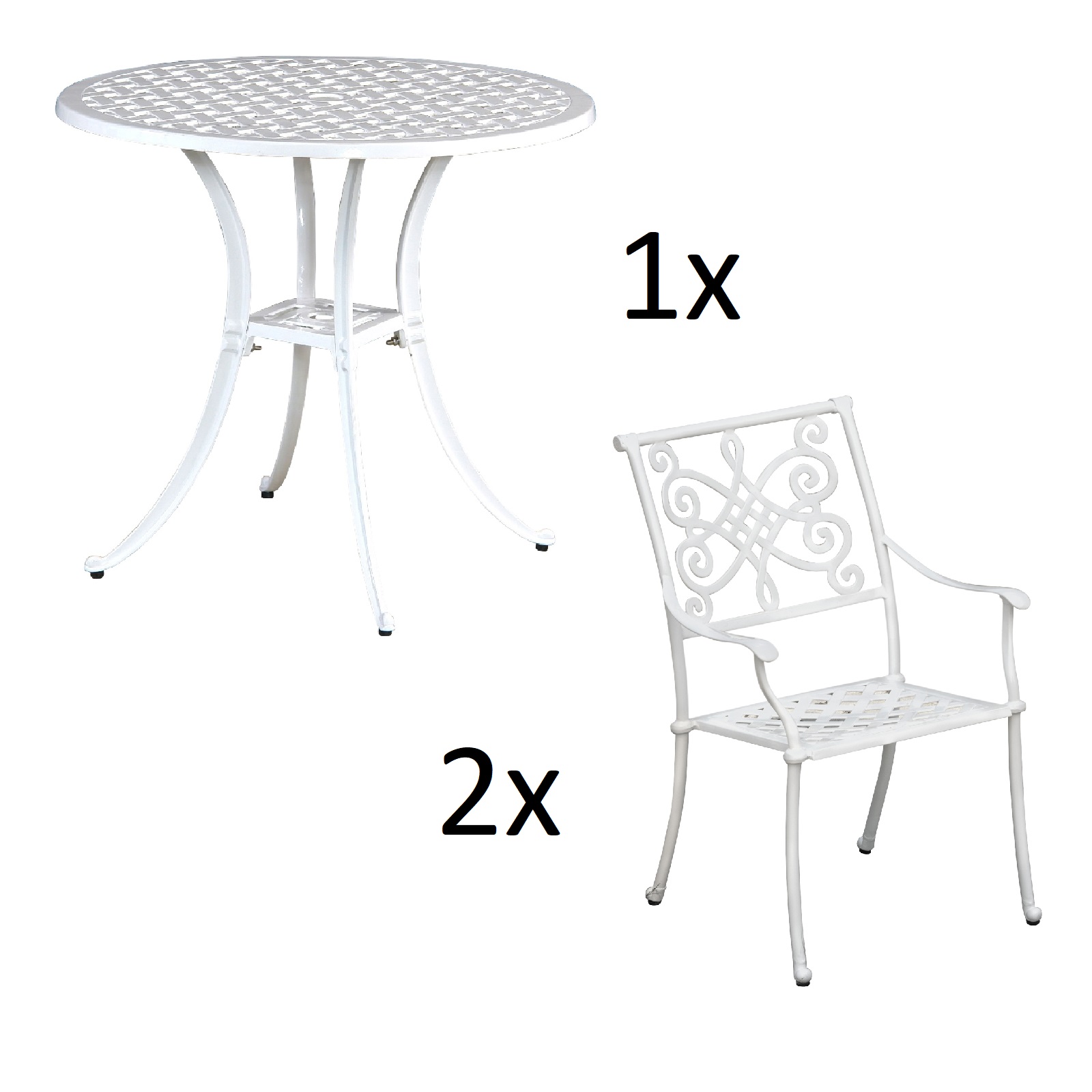 1x Inko Sitzgruppe Alu-Guss weiß bestehend aus 1x Tisch Ø 80 cm und 2x dem gewählten Sessel