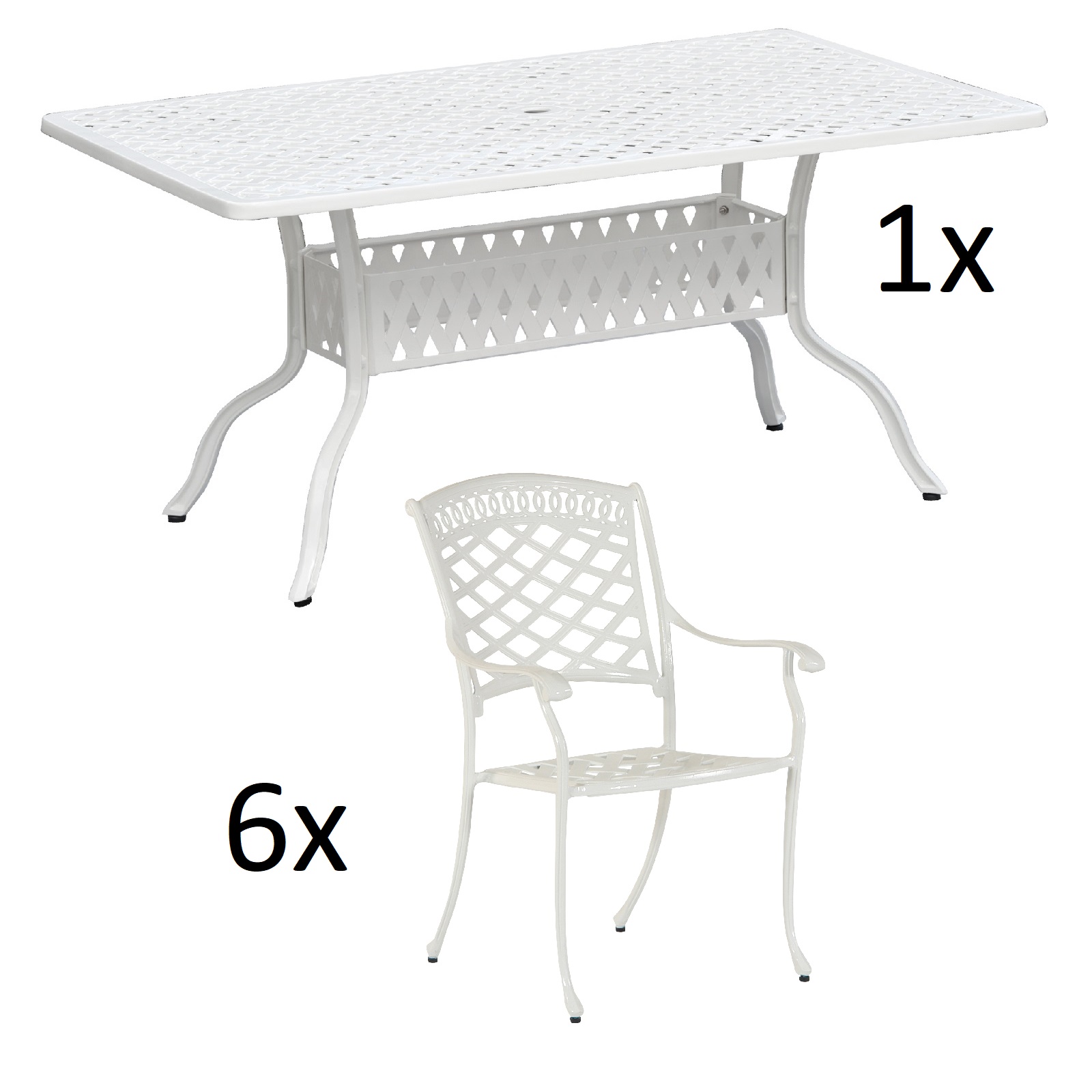 1x Inko Sitzgruppe Alu-Guss weiß bestehend aus 1x Tisch 150x97x74 cm und 6x dem gewählten Sessel