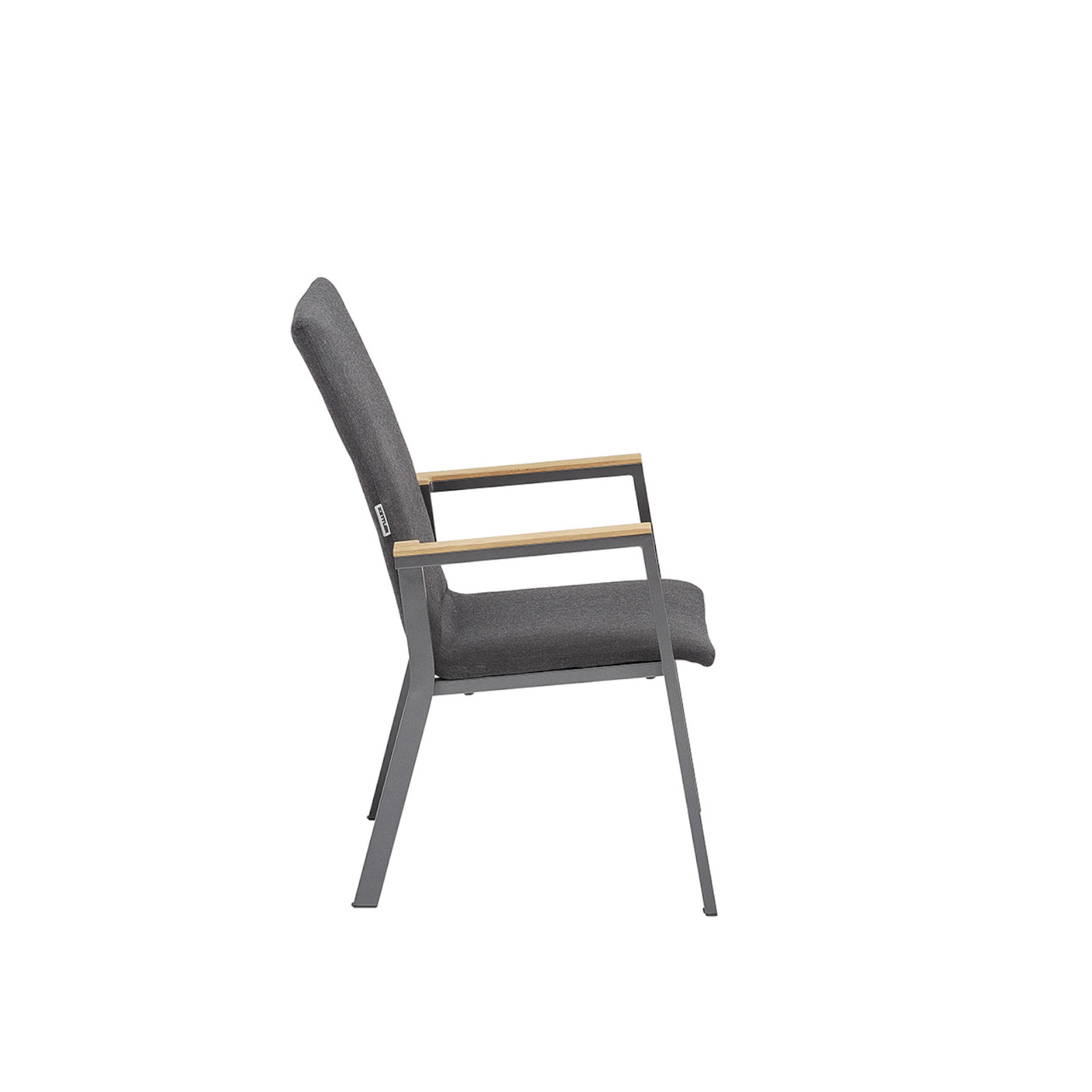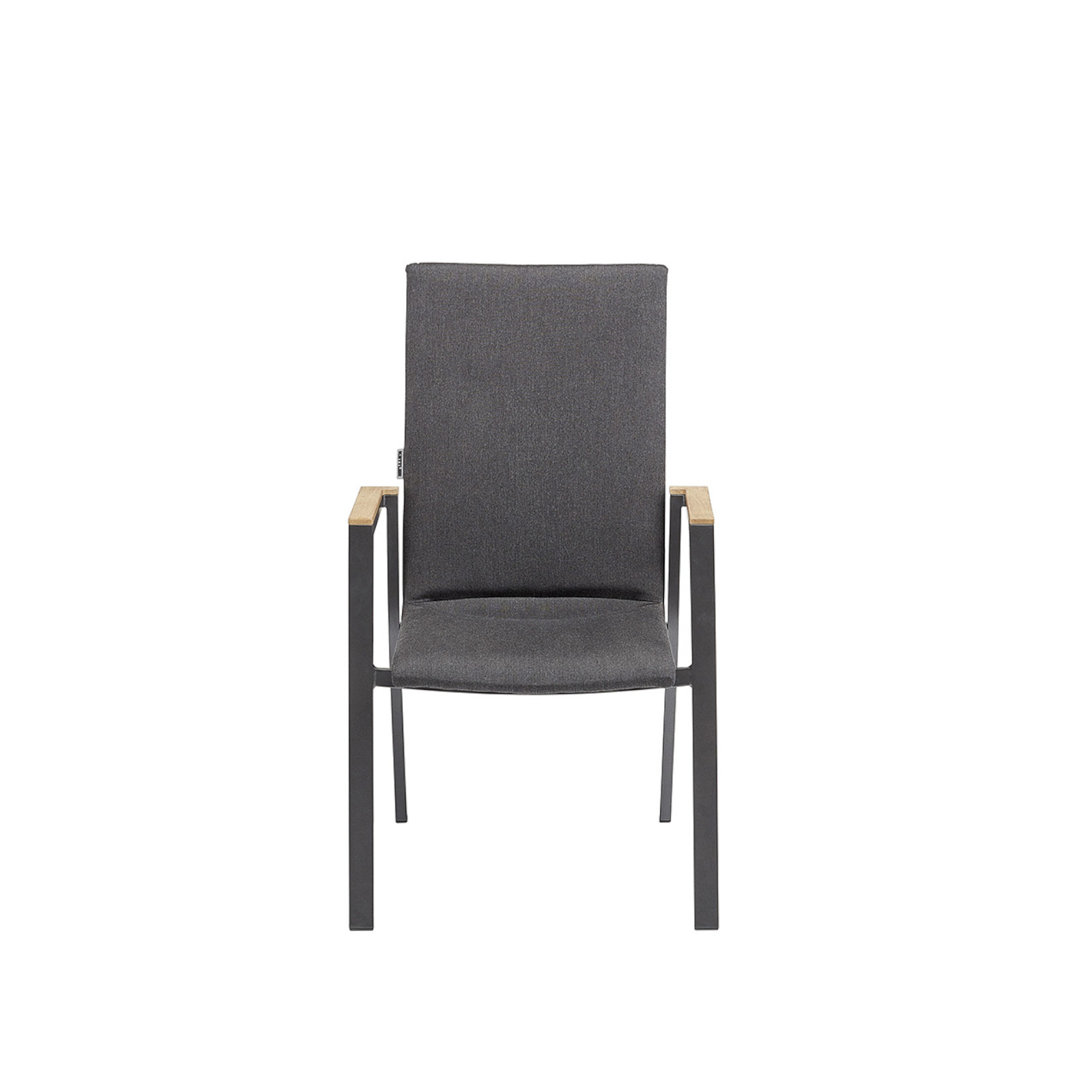Kettler Stapelsessel Rasmus Alu mit hoher Rückenlehne anthrazit/Sunbrella® sooty mit Teak Stapelstuhl 62x60x100 cm