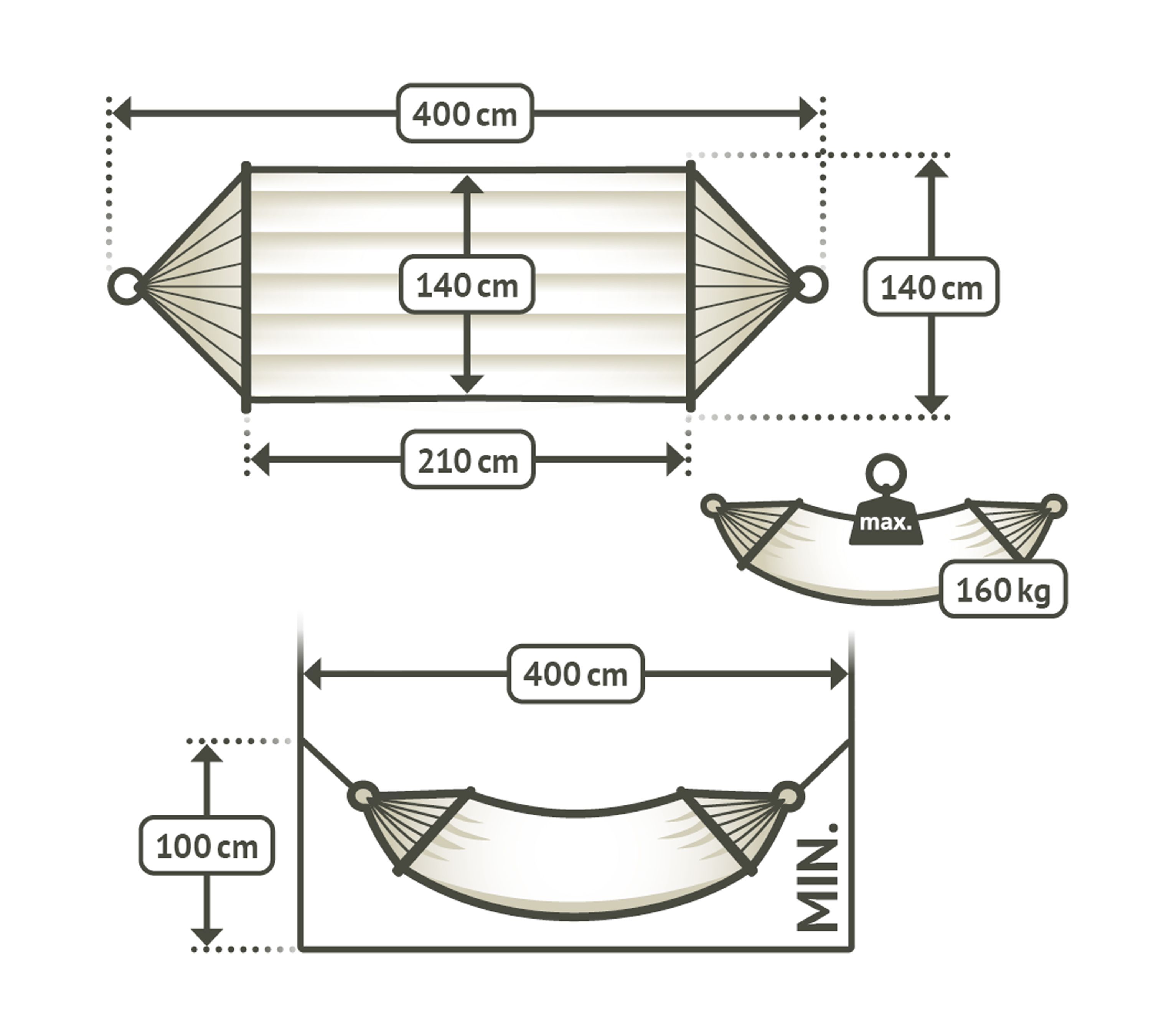 - Gesamtlänge der Hängematte: ca. 400 cm
