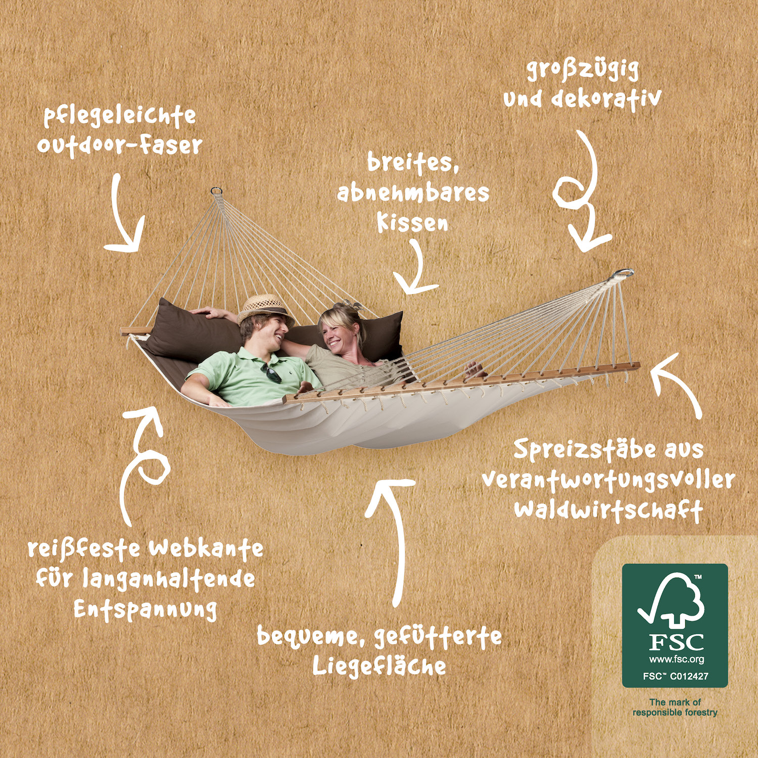 Eigenschaften "La Siesta Hängematte ALABAMA arabica braun Gefütterte Stabhängematte Kingsize"