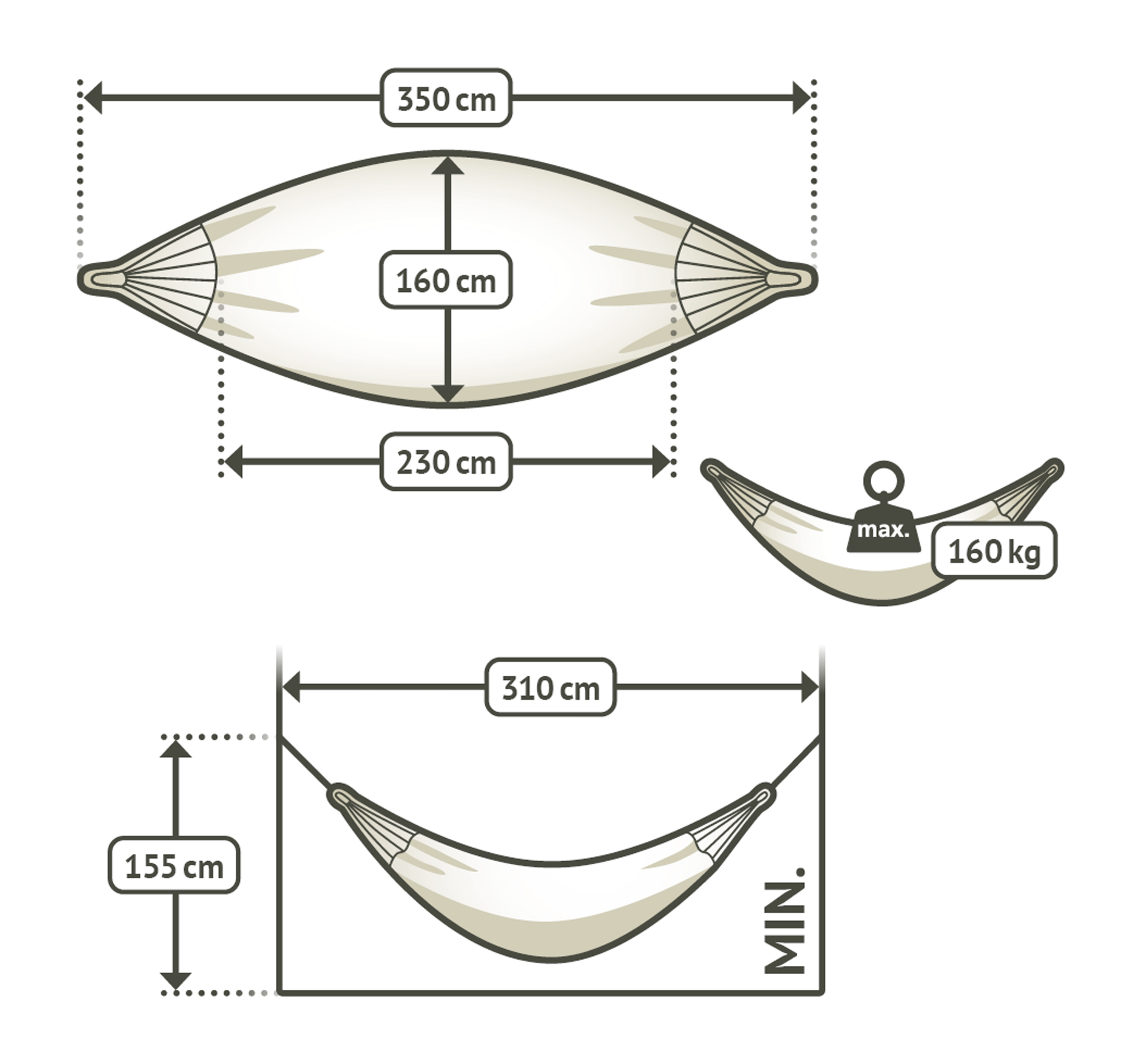 - Gesamtlänge der Hängematte: ca. 350 cm