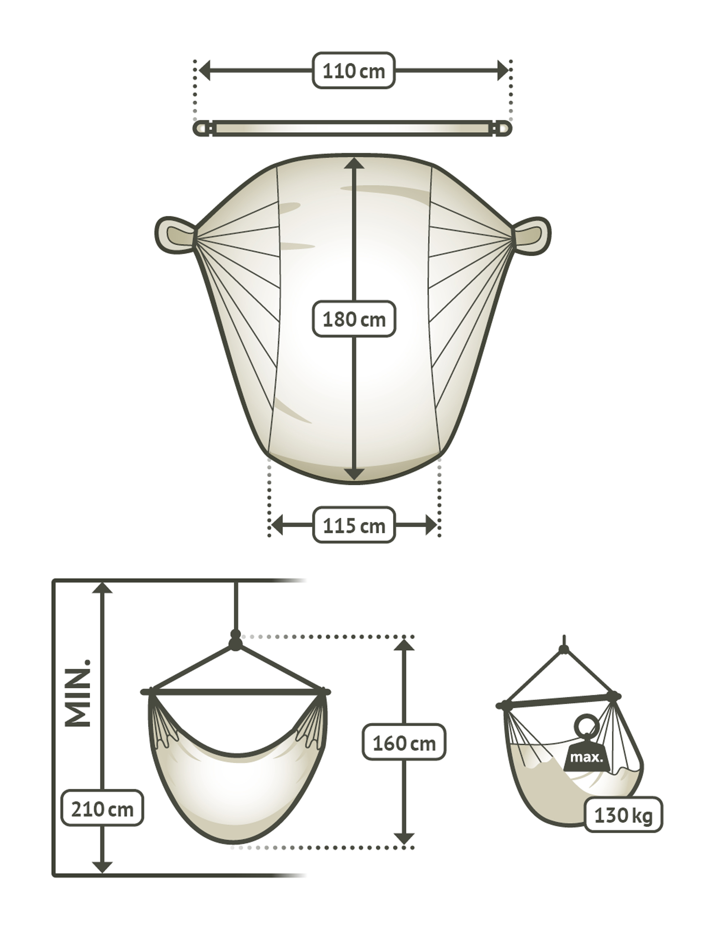 - benötigte Mindesthöhe zur Aufhängung: ca. 210 cm