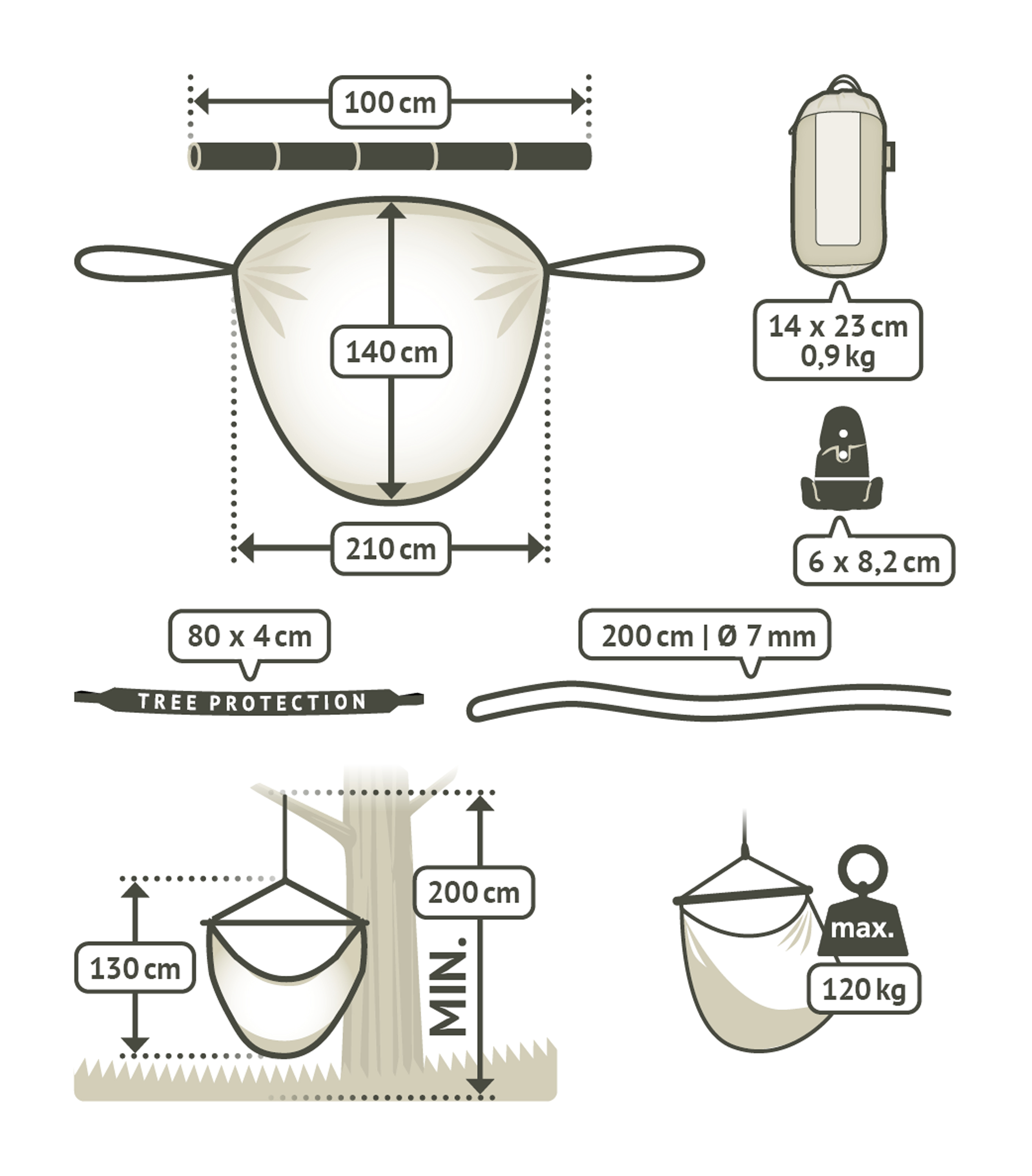 Der Hängestuhl ist aus hochwertigem Funktionsstoff (Nylon Trilobal) hergestellt, der hauchdünn und gleichzeitig besonders belastbar ist. Der Lounger ist sehr bequem, atmungsaktiv und trocknet schnell.