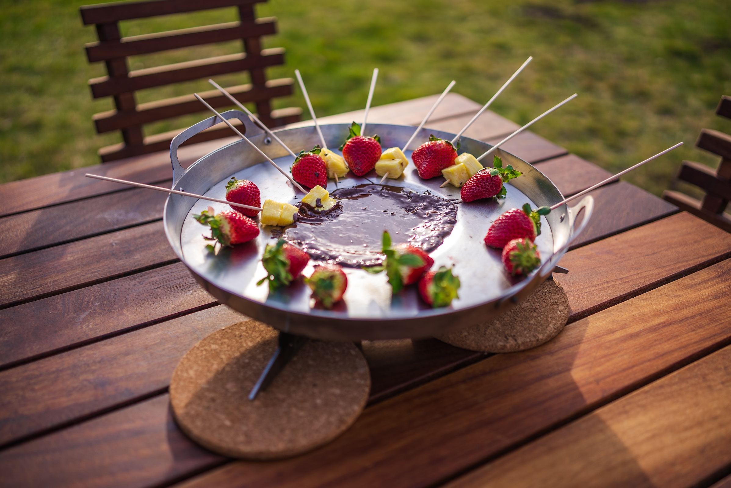 - Ein zentraler Behälter für Saucen oder Fondue eröffnet neue kulinarische Möglichkeiten