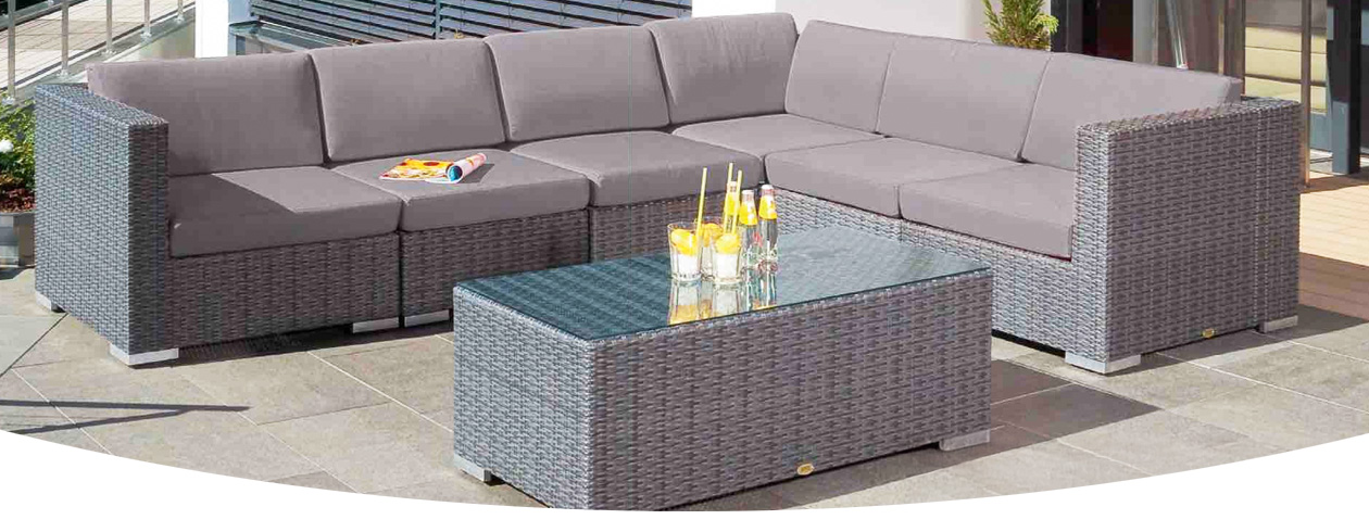 - Gestell aus Aluminium, bespannt mit PE-Kunststoffgeflecht in stone-grey
