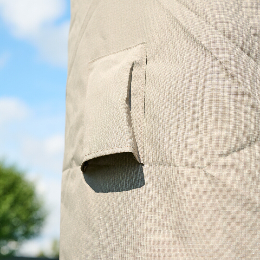 Gefertigt aus hochwertigem Polyester mit TPU-Laminierung, schützt die Schutzhülle Ihren Sonnenschirm effektiv vor Regen, Schmutz, UV-Strahlung und Witterungseinflüssen. Das Material ist besonders strapazierfähig, reißfest und wasserabweisend – eine langlebige Lösung für den täglichen Einsatz im Garten, auf der Terrasse oder dem Balkon.