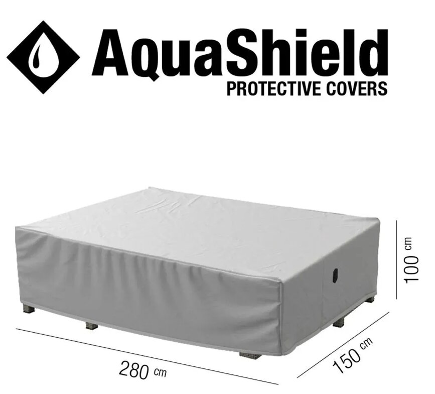 Nässe, Kälte und Hitze verlangen oft den Gartenmöbel einiges ab. Um die Möbel bei nichtgebrauch zu schützen eignet sich die Schutzhülle (280x150x100cm) von AquaShield hervorragend. Durch das Active Air System wird die Bildung von Kondensation und Schimmel reduziert. Über das Zugband am unteren Rand kann die Hülle enger gezogen werden. Damit die Hülle beim nächsten Luftstoß nicht wegfliegt, befinden sich 4 Gummiösen in den Ecken.