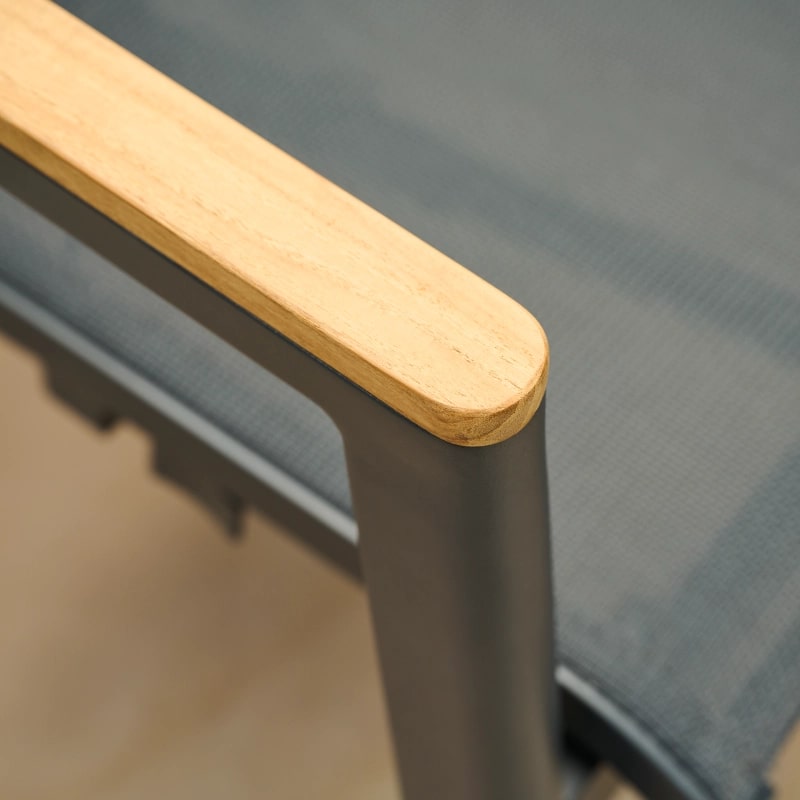 Der Bologna in edlem Grau fügt sich harmonisch in Ihre exklusive Gartenlandschaft ein und verleiht ihr zeitlose Eleganz. Das luftdurchlässige Textilgewebe bietet hohen Sitzkomfort und trocknet schnell – ideal für entspannte Momente im Freien. Die ergonomische Rückenlehne lädt zum stilvollen Zurücklehnen ein.
