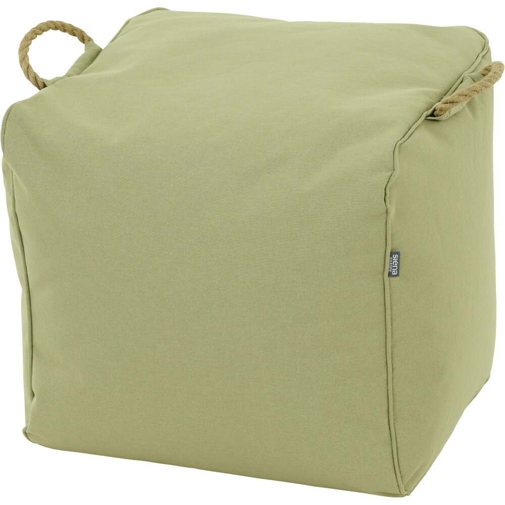 Leichter Sitz- & Fußhocker mit wetterfestem Polyester-Bezug und Staufach.