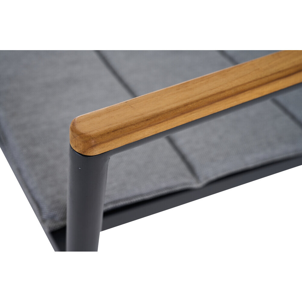 Das hochwertige, luftdurchlässige Textilgewebe bietet nicht nur unvergleichlichen Sitzkomfort, sondern trocknet nach einem Regenschauer in kürzester Zeit – ideal für anspruchsvolle Momente der Entspannung. Die großzügige, ergonomisch gestaltete Rückenlehne lädt Sie ein, sich stilvoll zurückzulehnen und das Leben in vollen Zügen zu genießen.