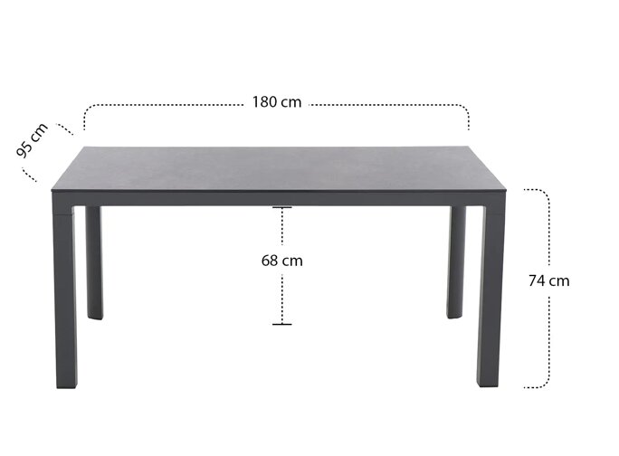 Eigenschaften "Siena Garden Silva Dining Tisch – 180 x 95 cm, Aluminium (matt anthrazit) & HPL Titan"