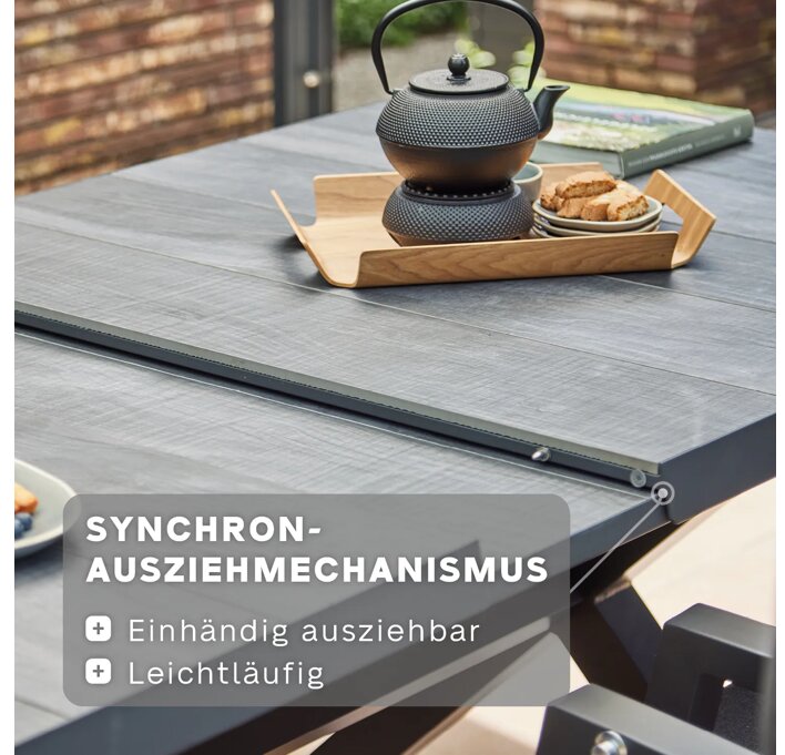 - 1x Siena Garden Sincro Dining Tisch, ausziehbar – 200/260 x 100 cm, Aluminium (matt anthrazit) & HPL Titan