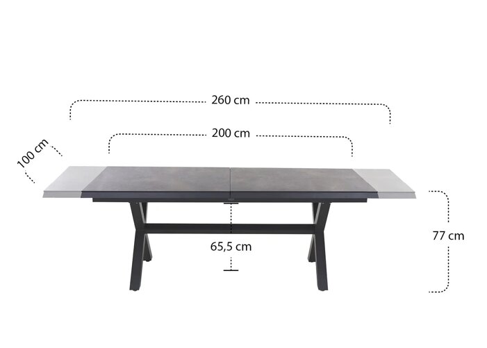 Eigenschaften "Siena Garden Sincro Dining Tisch, ausziehbar – 200/260 x 100 cm, Aluminium (matt anthrazit) & HPL Titan"