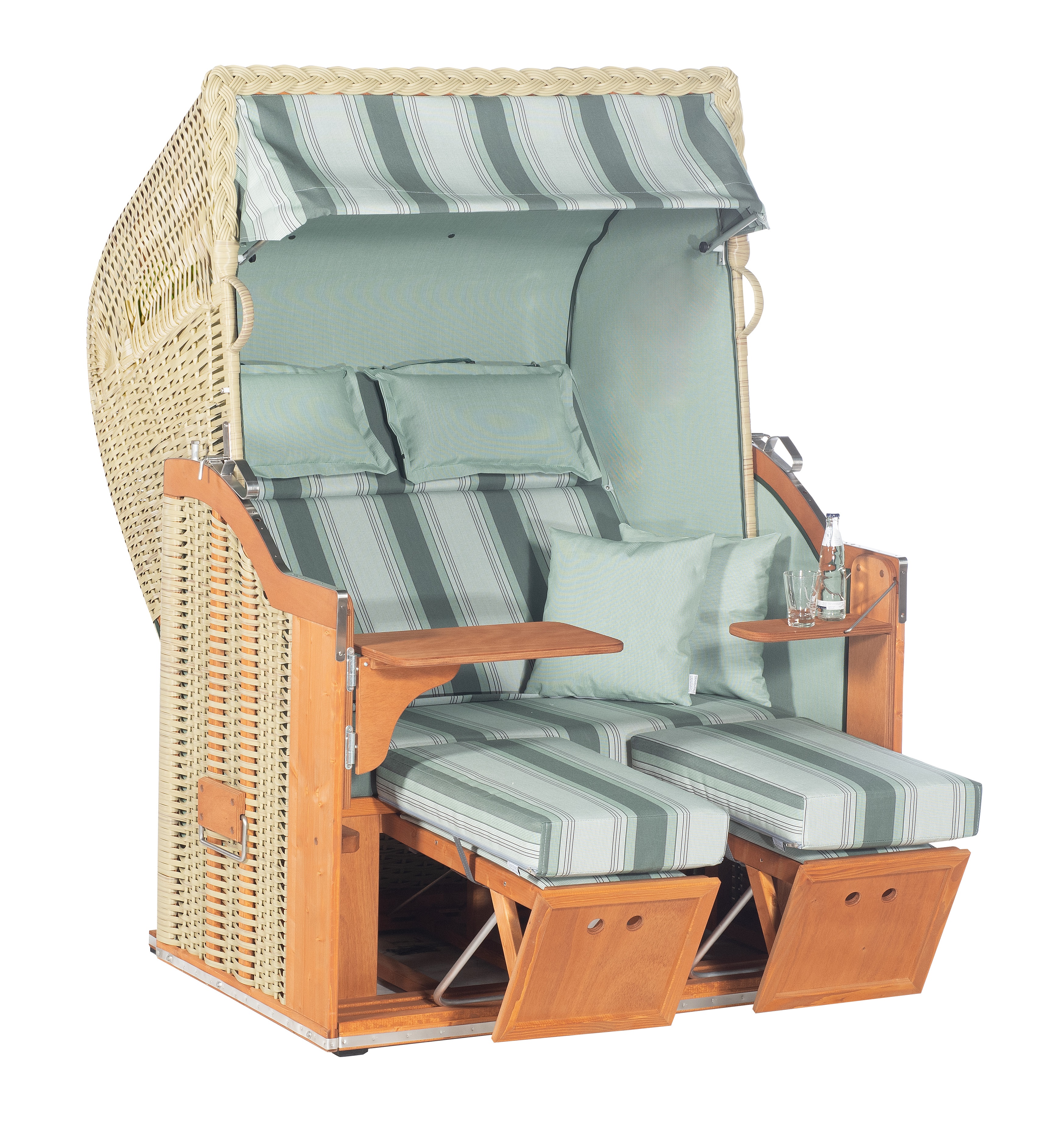 Sonnenpartner Gartenstrandkorb "Classic" 2-Sitzer, Halbliegemodell Kunststoffgeflecht in Seegrasoptik gefertigt mit Stoff Nr. 26 Oberkorbhimmel & Seitenteile uni mint/weiß 724