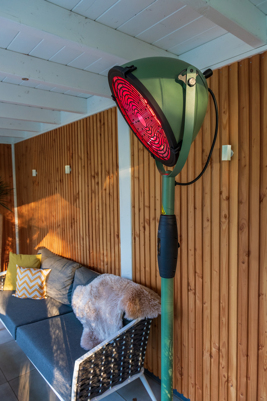 Die SUNRED® Indus Ultra Standing Jade Green 2.100 Terrassenheizung vereint Stil, Leistung und Komfort.
