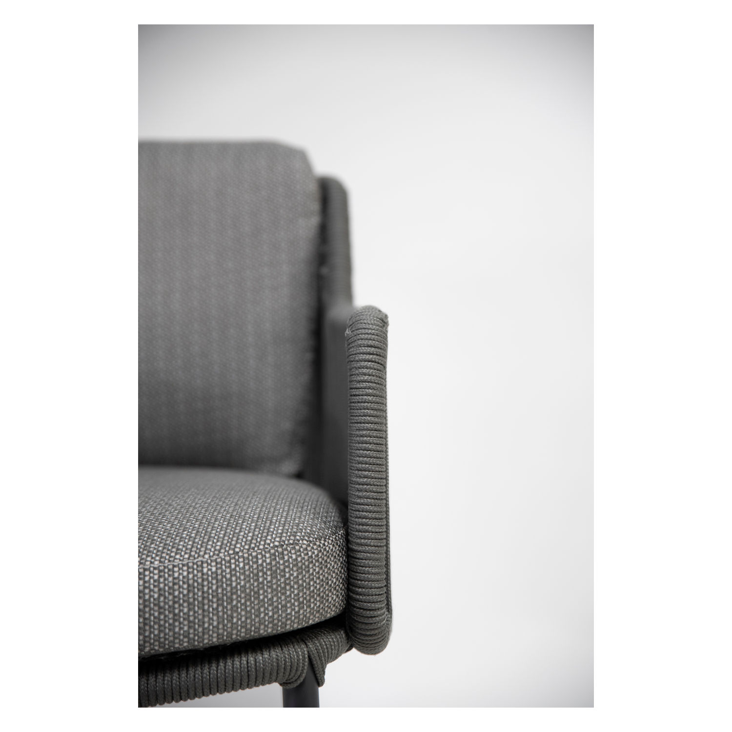 Der elegante Dining Sessel ist ein besonderer Hingucker in ihrem Garten. Das Aluminium-Gestell ist mit einem hochwertigen Geflecht aus Kunststoff-Fasern bespannt und lädt zum Verweilen ein. Der Sessel bietet dank der mitgelieferten Kissen und der extra hohen Rückenlehne besonderen Sitzkomfort.