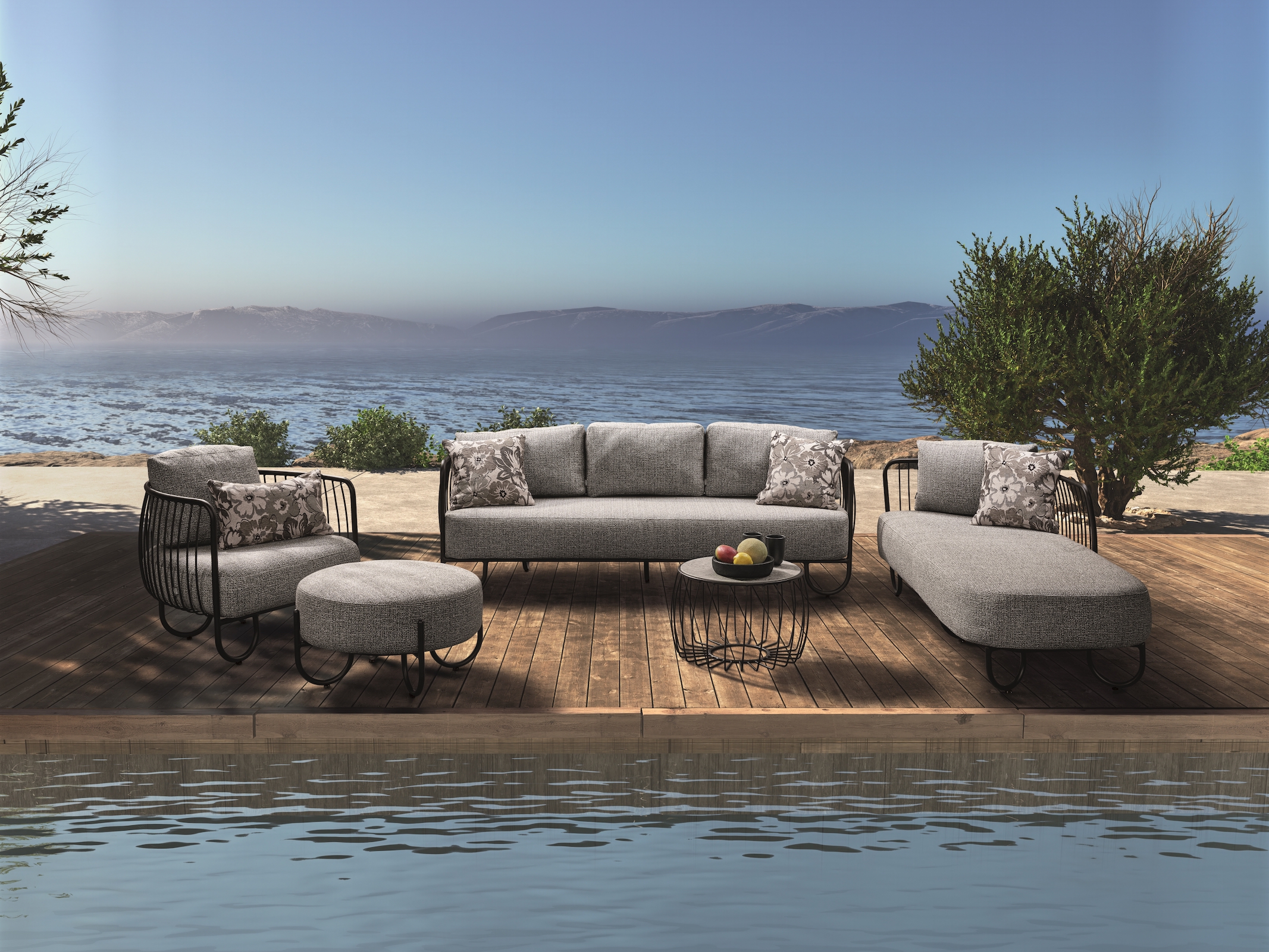 Produktinformationen "Ära by Stern 3-Sitzer Lounge-Sofa Ila Aluminium schwarz matt Kissenset Polyacryl/Polyester Mélange grau"