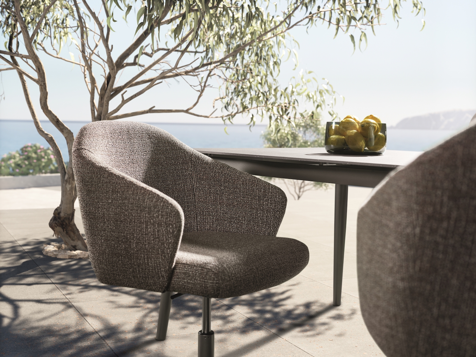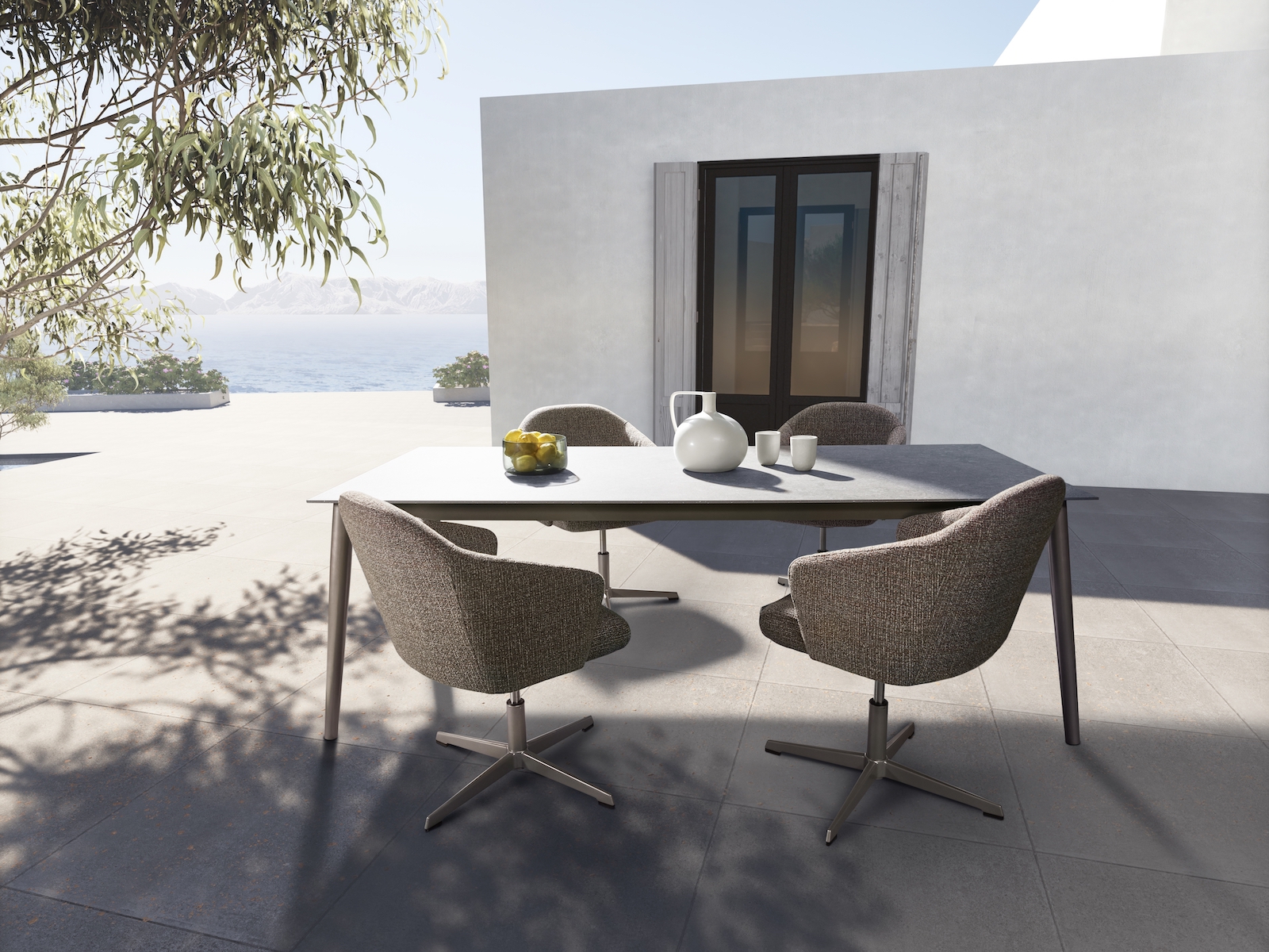 Der höhenverstellbare Dining Sessel Til von Ära by Stern ist ein sehr bequemer Outdoor Sessel für den Lounge- und zugleich für den Essbereich. Til bietet höchsten Sitzkomfort, ob bei der Arbeit am Schreibtisch, oder Dank seiner Höhenverstellung, im bequemen Loungefeeling. Die Füße sind aus pulverbeschichtetem Aluminium gefertigt. Der Schaumstoff ist schnelltocknend. Bei den Bezugstoffen setzt Ära by Stern auf die hochwertigen Q2 Stoffe der Firma Rohleder, diese sind wasserabweisend und für Allergiker geeignet.
