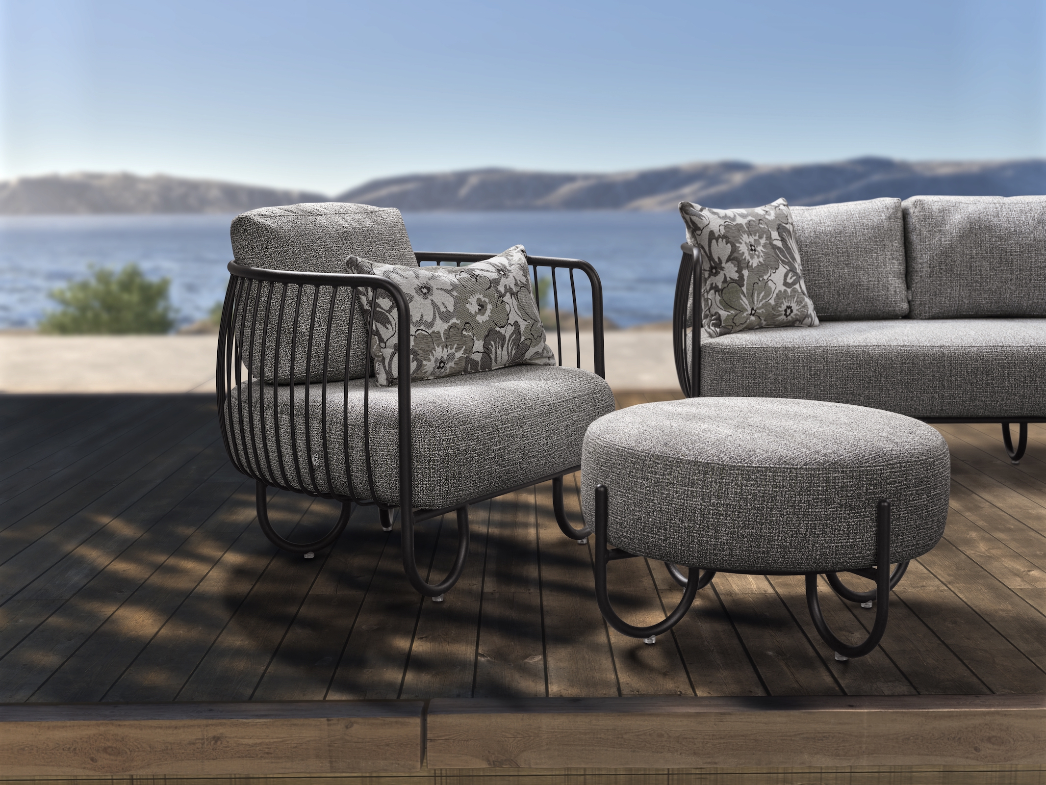 - Mit Sitz- und Rückenkissen in Mélange grau