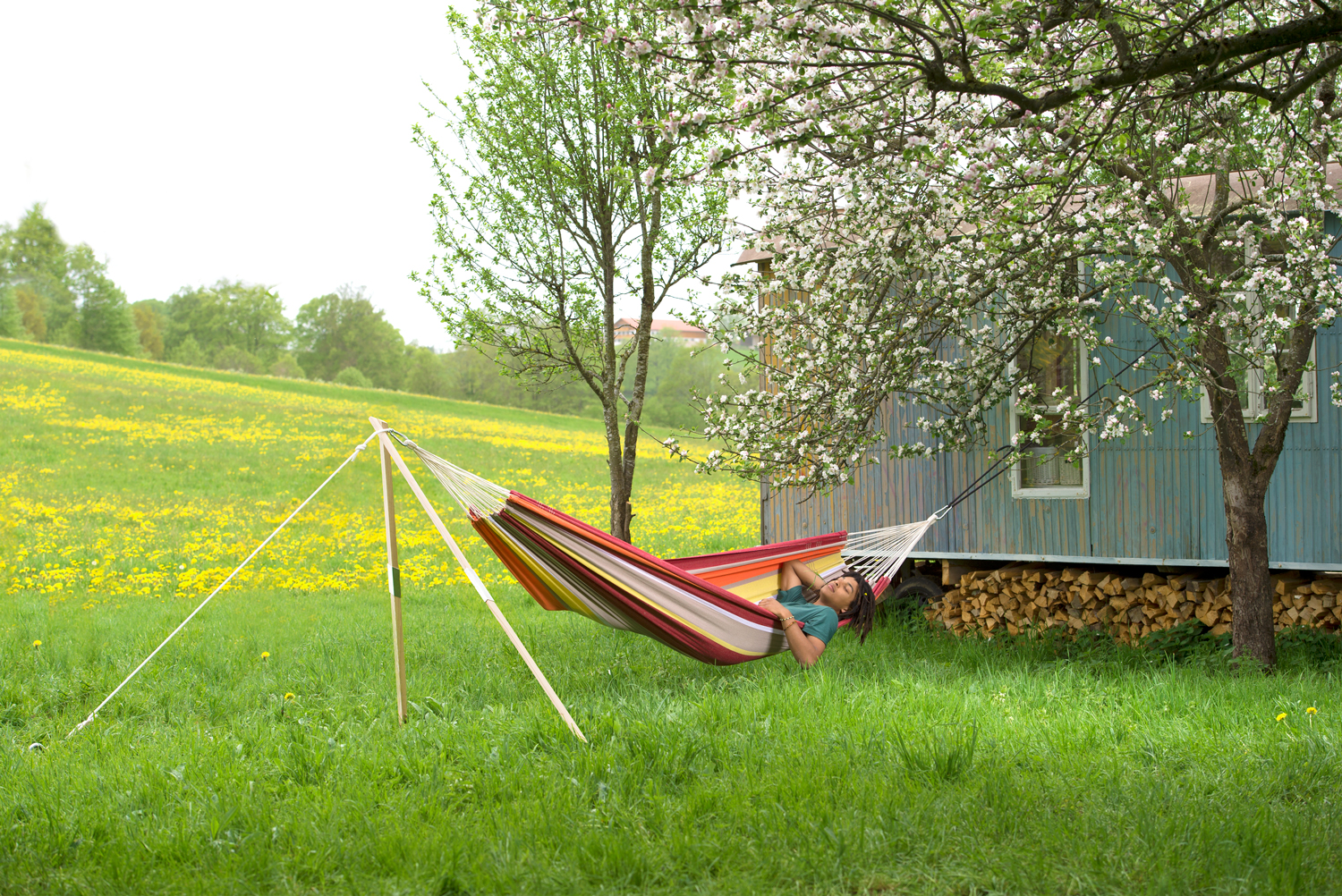 AMAZONAS Madera – Das perfekte Hängemattengestell aus Holz, wenn der zweite Baum im Garten fehlt! Der Baumersatz Madera ist die geniale Lösung, wenn nur ein Aufhängungspunkt für die Hängematte vorhanden ist.
