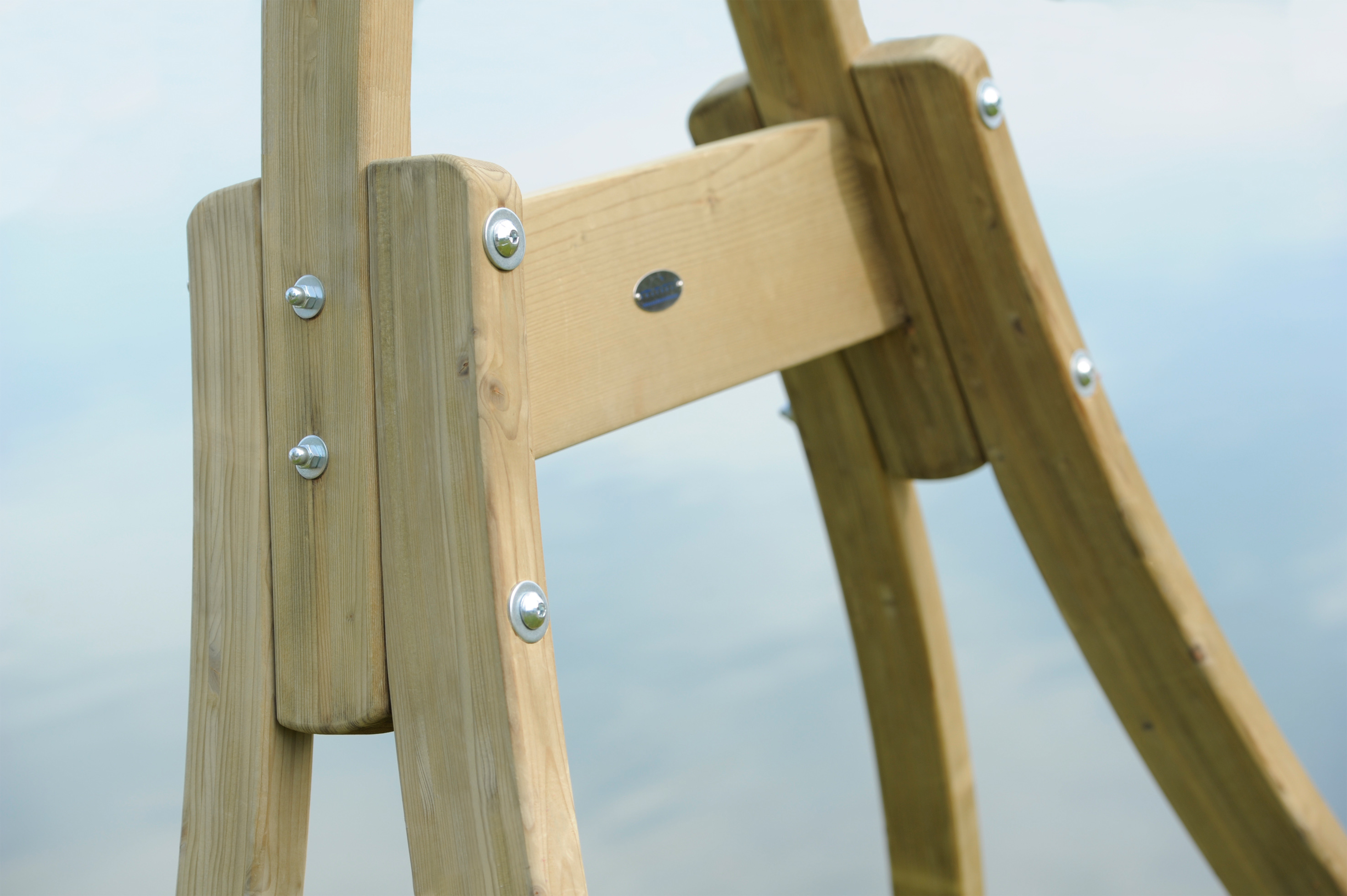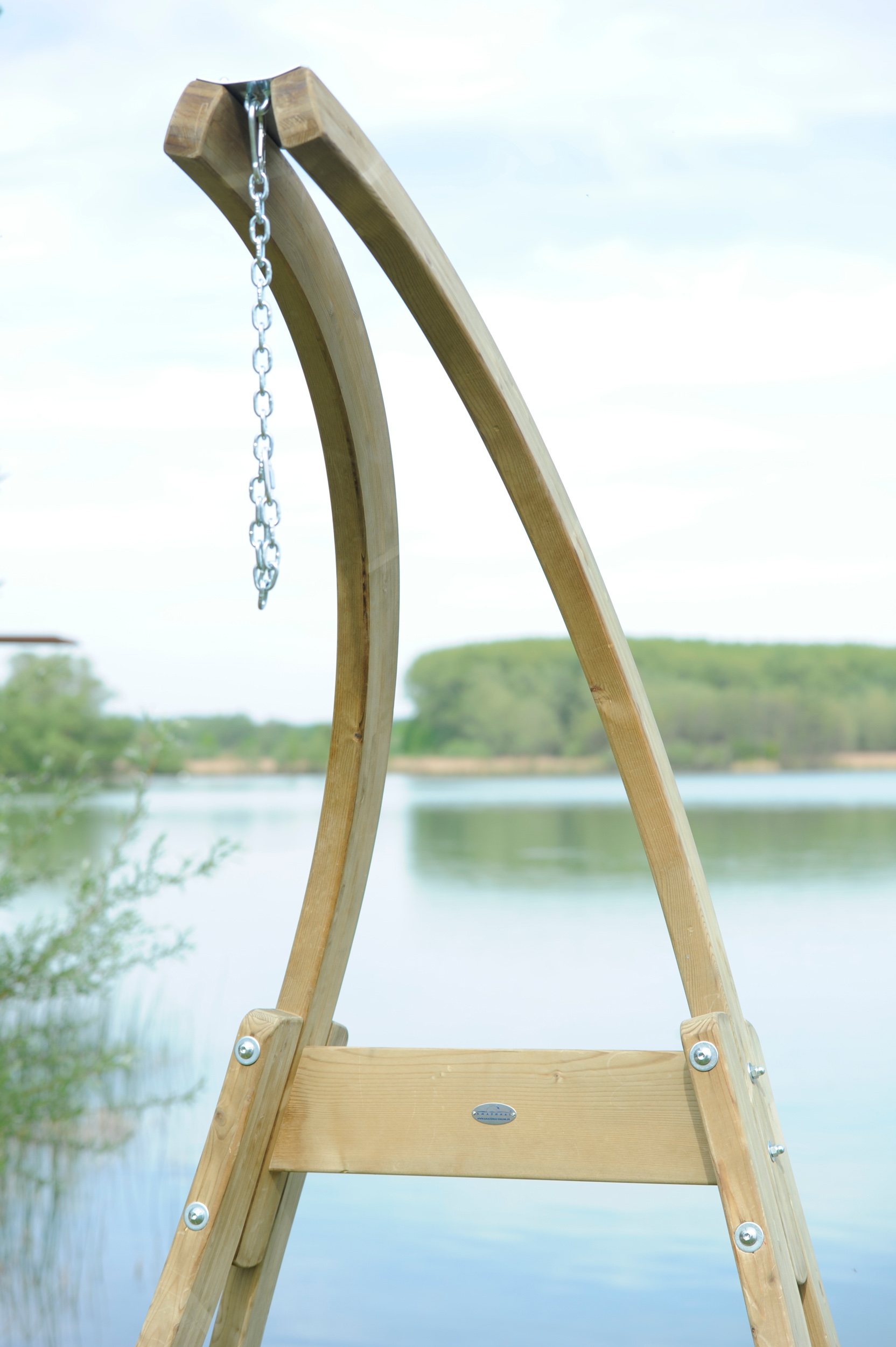 Optisch ist das Hängesesselgestell ein Hingucker. Stilvoll im Curved Design - absolut im Trend. Mit der korrossionsgeschützte Kettenaufhängung kann man dieses Gestell flexibel für verschiedene Höhen einstellen. Die spezielle Tauchbadimprägnierung macht das Gestell wetterfest - es kann also draussen bleiben. Die Hängesesselgestelle aus Holz sind im Vergleich zu den Metallgestellen wetterbeständiger, denn sie rosten nicht.