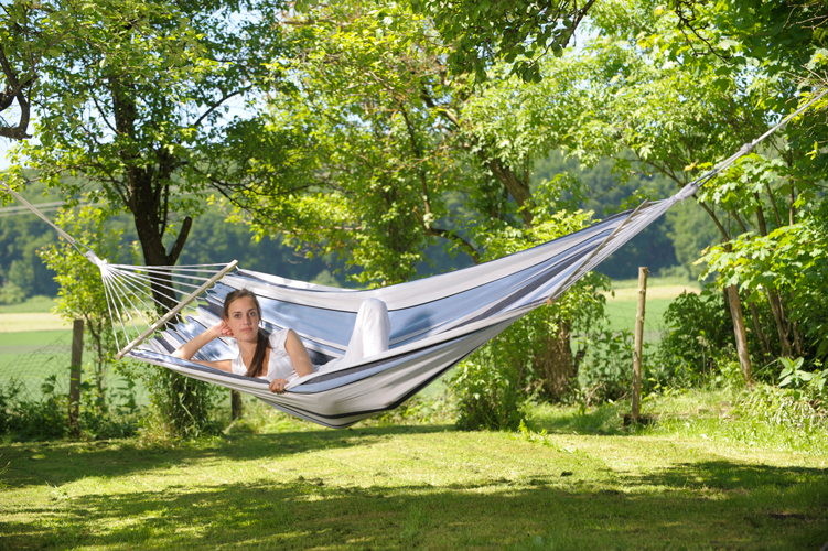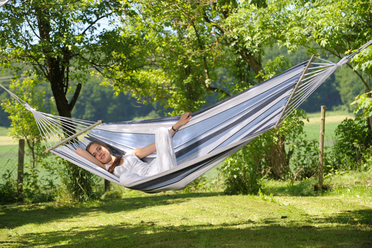 Die wetterfeste Stabhängematte Samba Marine von AMAZONAS hat eine angenehm große Liegefläche, welche ideal ist zum langen Entspannen unter der wärmenden Sonne. Der Stoff besteht aus einem speziellen wetterfesten Stoff. Dadurch können Sie die Hängematte bedenkenlos im Freien aufhängen. Dennoch sollte man die Samba bel schlechtem Wetter trocken und sauber verstauen. So haben Sie einfach länger Freude an Ihrer geliebten Stabhängematte.