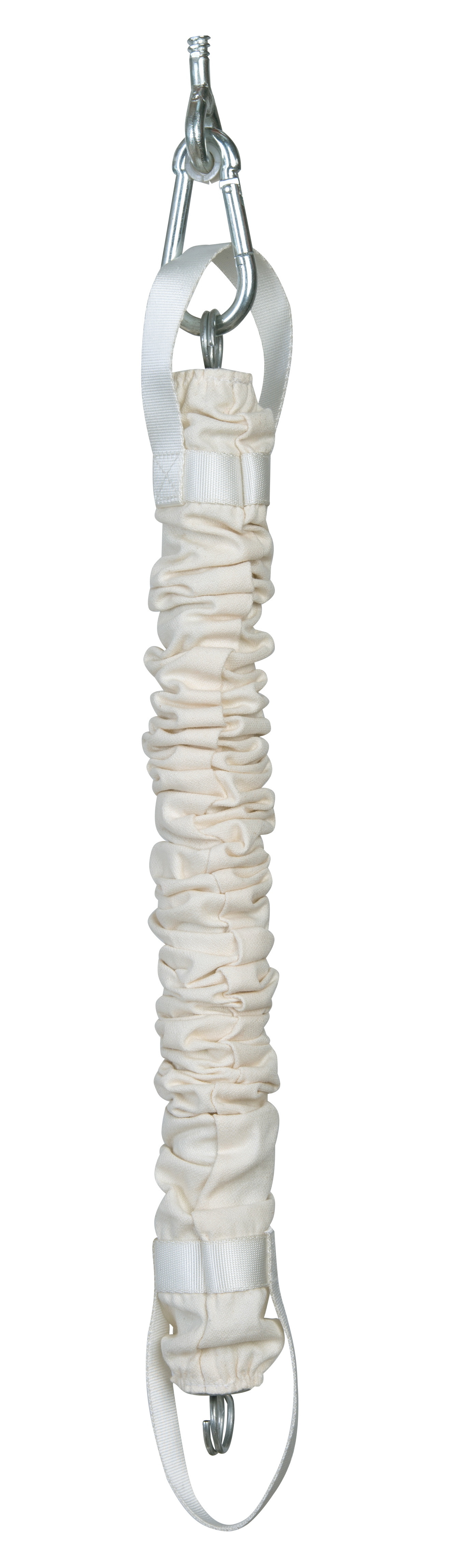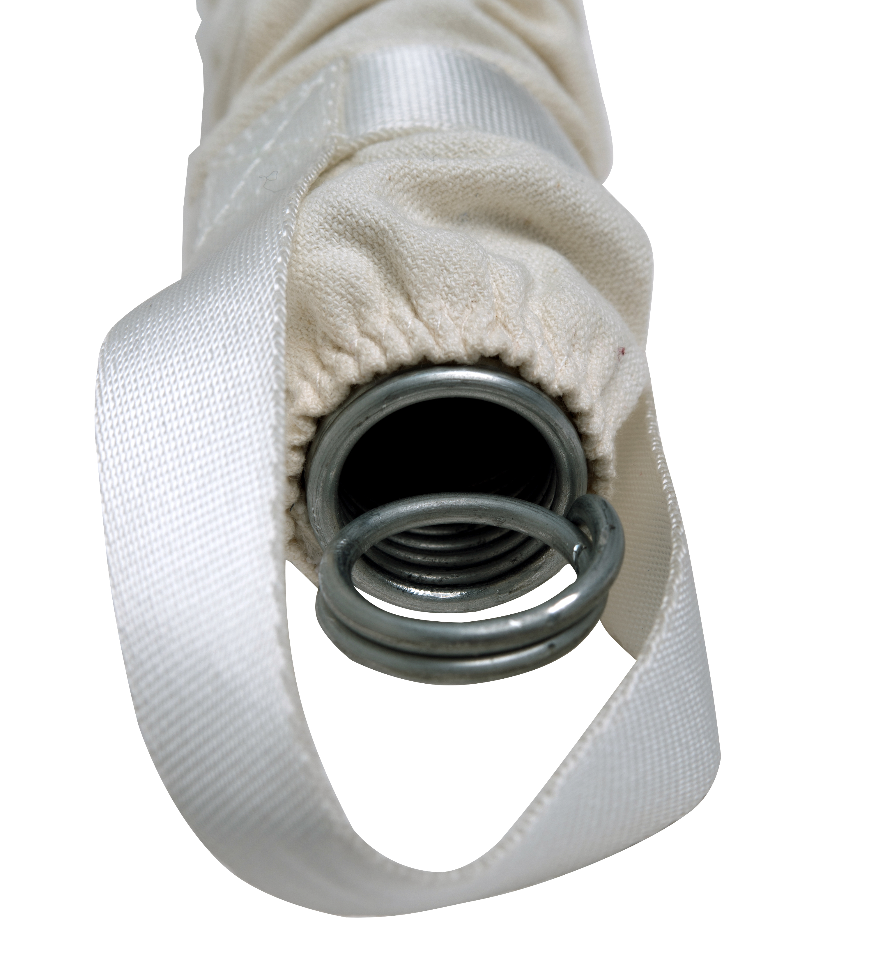Die beiliegende Stoffhülle verhindert, dass man sich die Finger in die gedehnte Feder einklemmt.