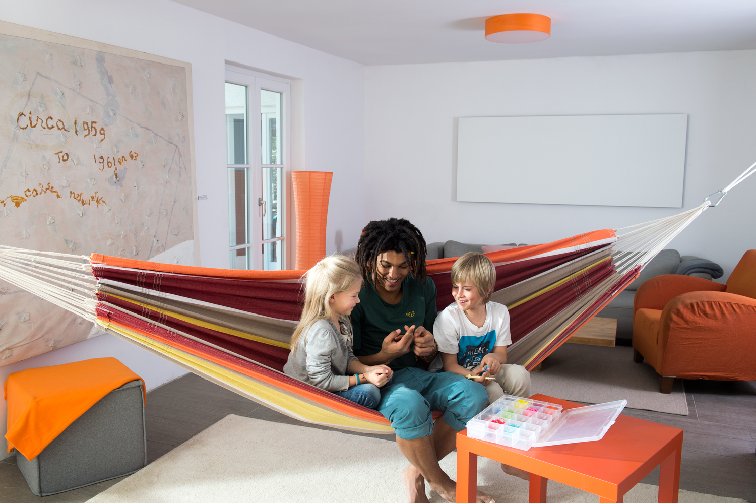 Die XL Hängematte Barbados bietet mit ihrer Liegefläche von 230 x 150 cm und einer Belastbarkeit von 200 kg maximale Entspannung für bis zu 2 Personen. In farbenfrohem Design lädt die Barbados zum Entspannen ein. Ein absolutes Must Have für jeden, egal ob im Urlaub oder daheim. Das Gefühl von Schwerelosigkeit und Gehaltenwerden entspannt den Körper im Alltag, lädt die Akkus wieder auf und fördert die Gesundheit.