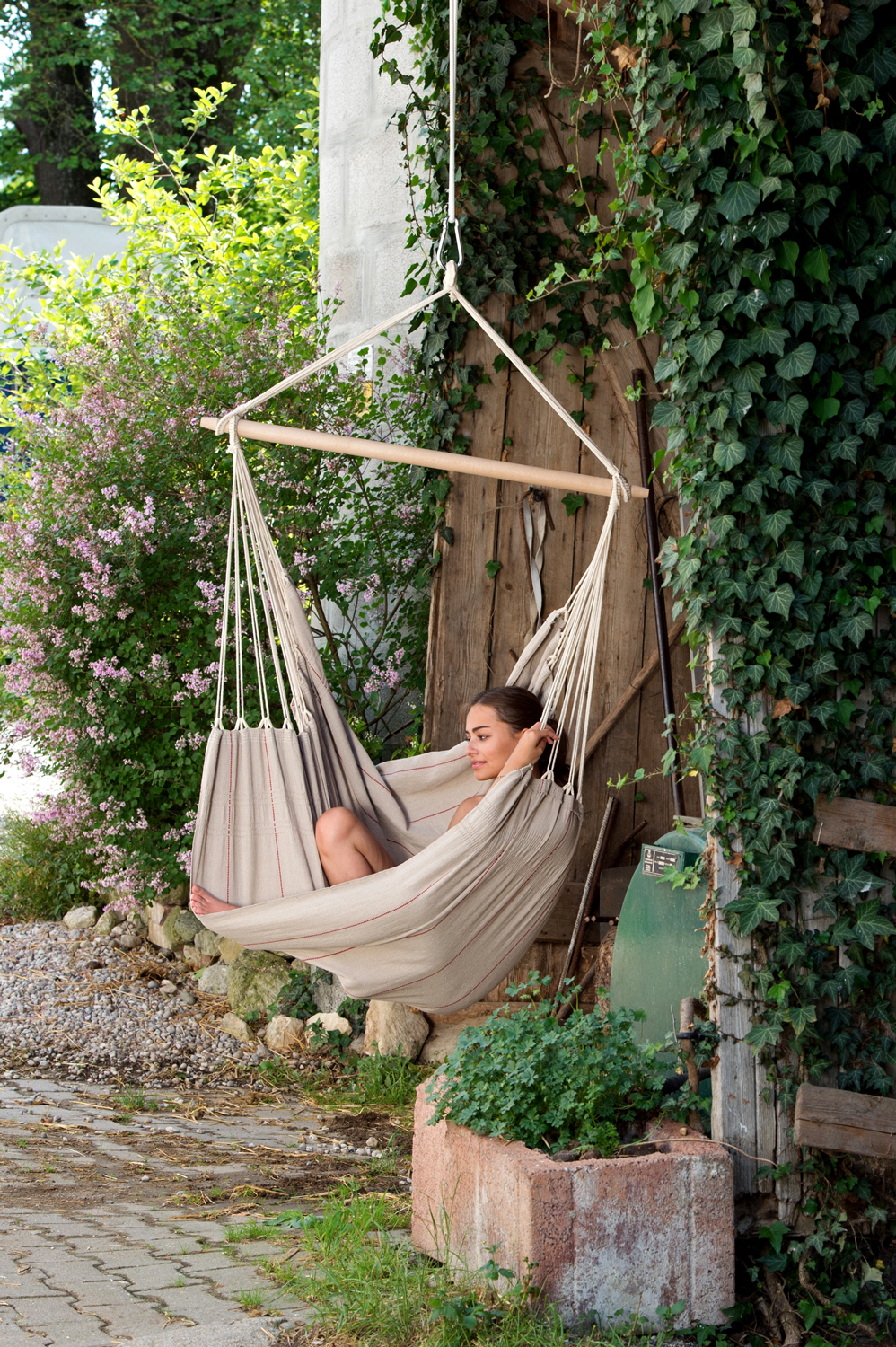 Der Hängesessel ist dicht gewoben und sorgfältig verarbeitet. Der dezente Hängesessel ist ein Möbel zum Entspannen im Garten, am Balkon, auf der Terrasse oder im Haus. 5-fach vernähte Abschlüsse sowie der extradichte 400 g/m2 Webstoff garantieren, wie bei allen brasilianischen Hängesesseln von Amazonas, höchste Belastbarkeit.