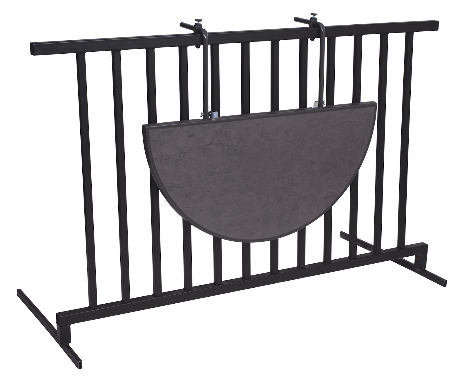 Die Tischplatte aus Kunststoff ist absolut wetterfest und pflegeleicht. Das stabile Stahlrohrgestell ist ebenfalls wetterfest beschichtet. Für eine maximale Brüstungsbreite von 15 cm geeignet.