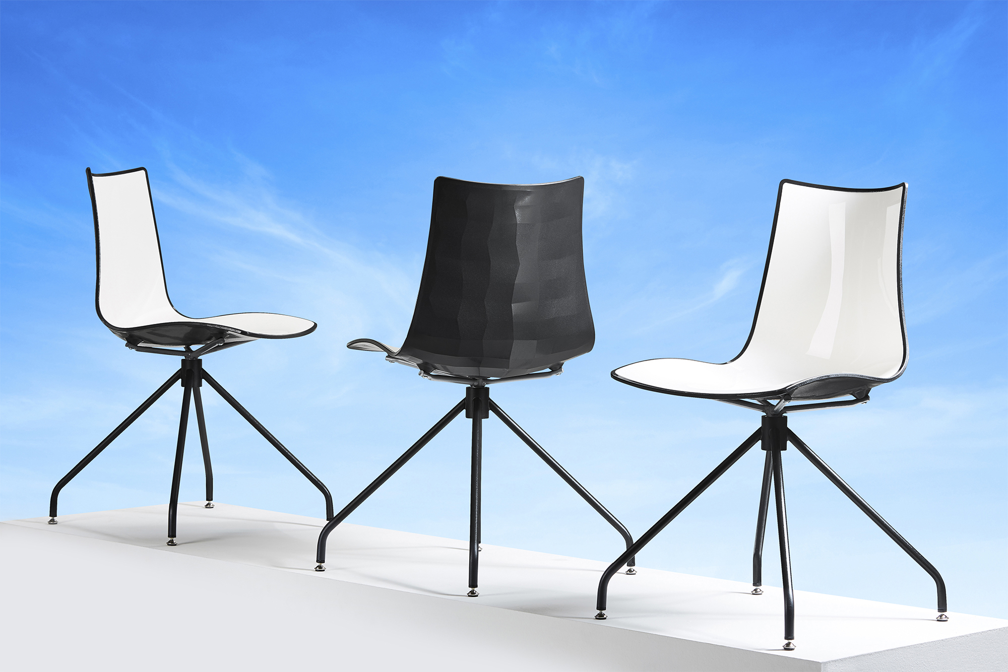 - Elegante, hochglänzende bi-color Sitzschale aus glasfaserverstärktem Kunststoff