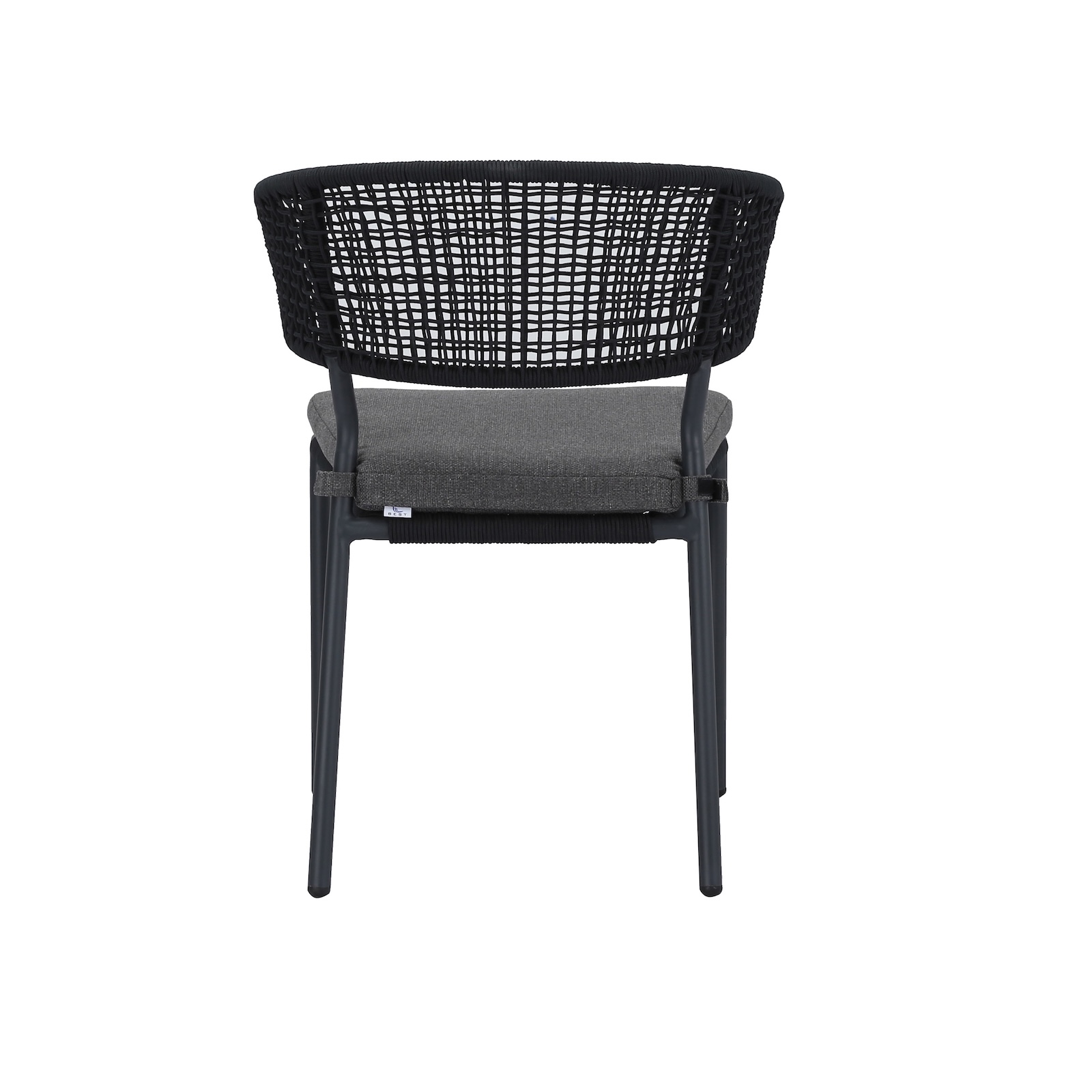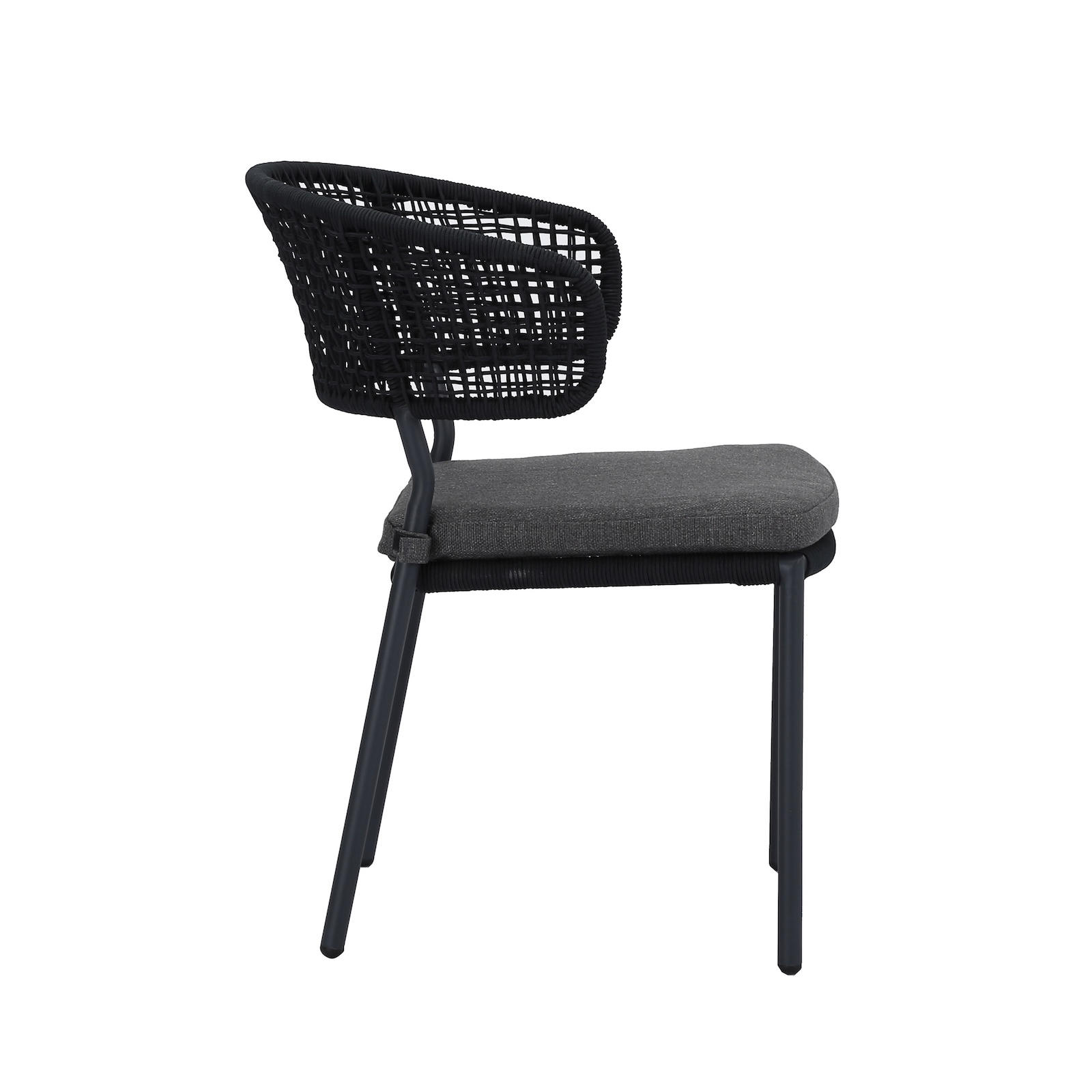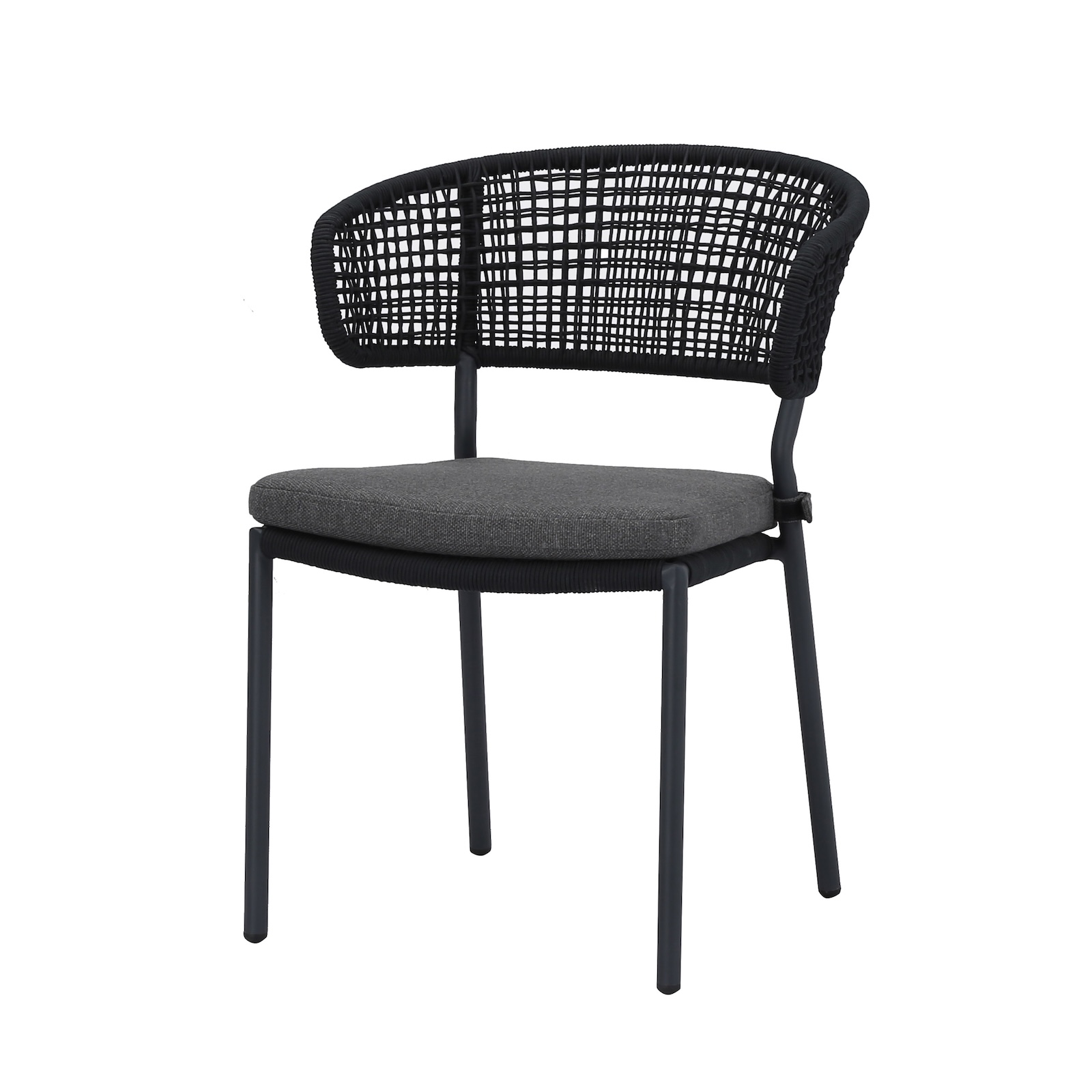 Der Spitz Outdoor-Stuhl verbindet klassischen Charme mit modernem Komfort. Der Stuhl hat einen robusten Stahlrahmen und eine Sitzfläche und Rückenlehne aus Seilgeflecht, die allen Witterungsbedingungen trotzen.