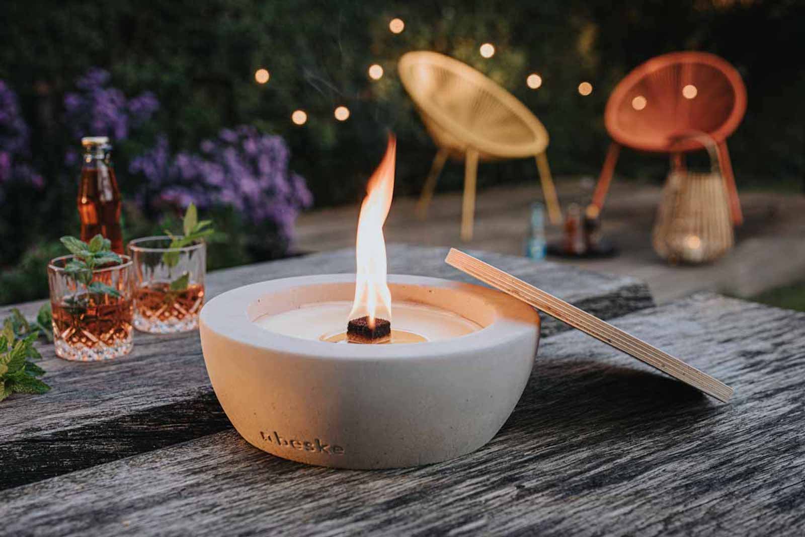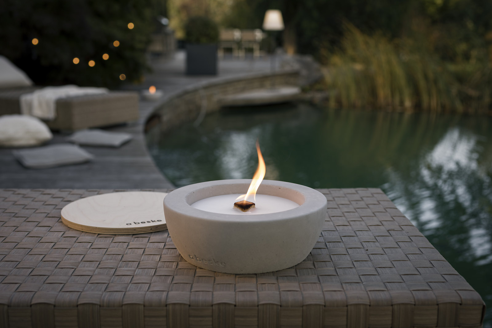 Eigenschaften "Betonfeuer Savo Tischfeuer Garten-Fackel Outdoor-Kerze mit Dauerdocht inkl. Löschbrett"