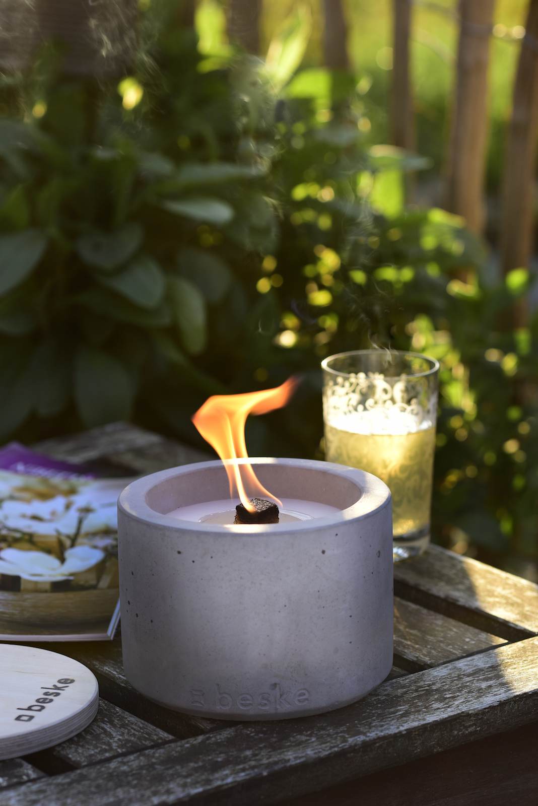 BETONFEUER® DER BESKE-MANUFAKTUR – DIE IDEE DAHINTER: Die Betonfeuer wurden einst entwickelt, um eine sinnvolle Verwendung für Kerzenreste zu ermöglichen. Wer kennt es nicht: Die meisten Kerzen brennen nicht komplett runter. Wachs allerdings ist teuer und jeder liebt es eine Flamme, egal ob Kerze, Lagerfeuer oder Gartenfackel, in naher Umgebung um sich herum zu haben. Das Betonfeuer ist die perfekte Lösung. Der natürlich abbaubare Dauerdocht verwandelt Kerzenreste in langanhaltende Gemütlichkeit und Romantik und erzeugt im Handumdrehen eine echte Lagerfeueratmosphäre.