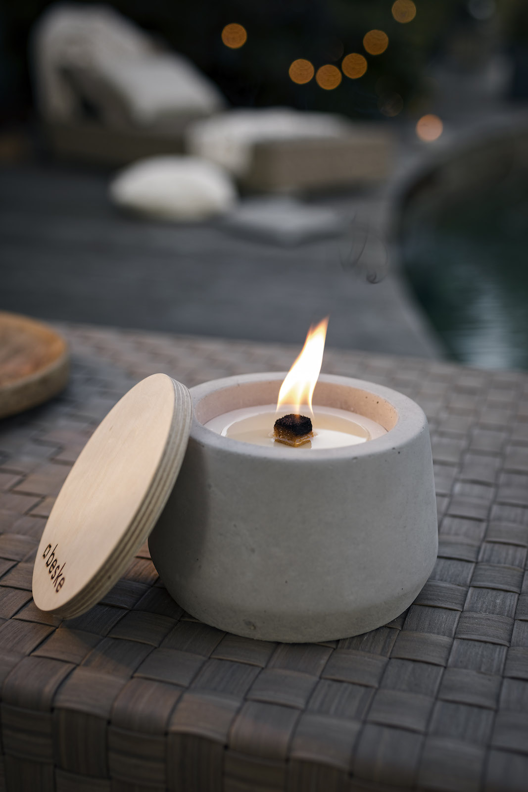 Produktinformationen "Betonfeuer Steller Tischfeuer Garten-Fackel Outdoor-Kerze mit Dauerdocht inkl. Löschbrett"