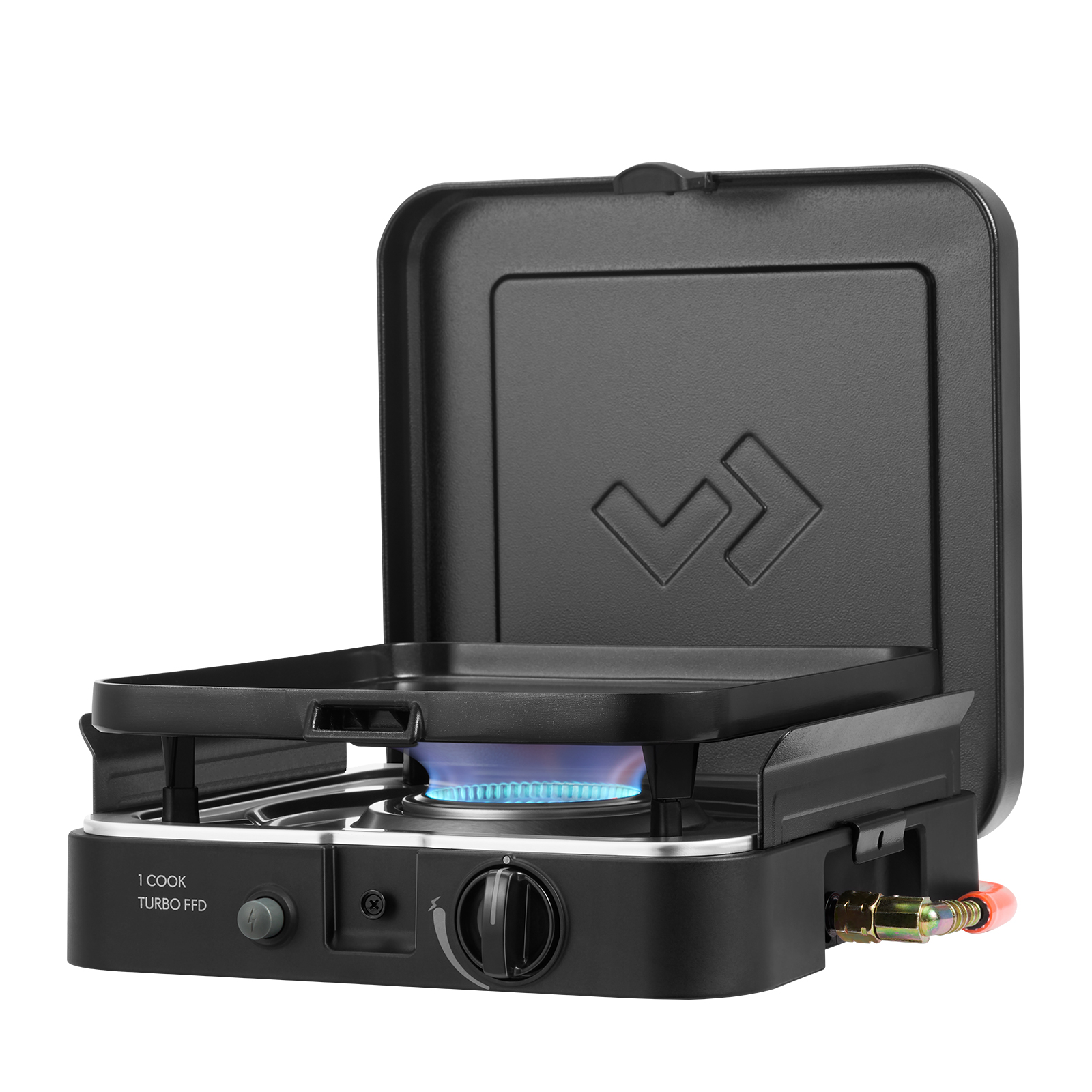Die Temperaturregulierung erfolgt einfach und präzise mit Hilfe eines Drehreglers. Durch die FFD Zündsicherung wird die Gaszufuhr automatisch abgeschaltet, wenn die Flamme unerwartet erlöschen sollte. So ist auch kann der kompakte Gaskocher auch in Innenräumen sicher genutzt werden.