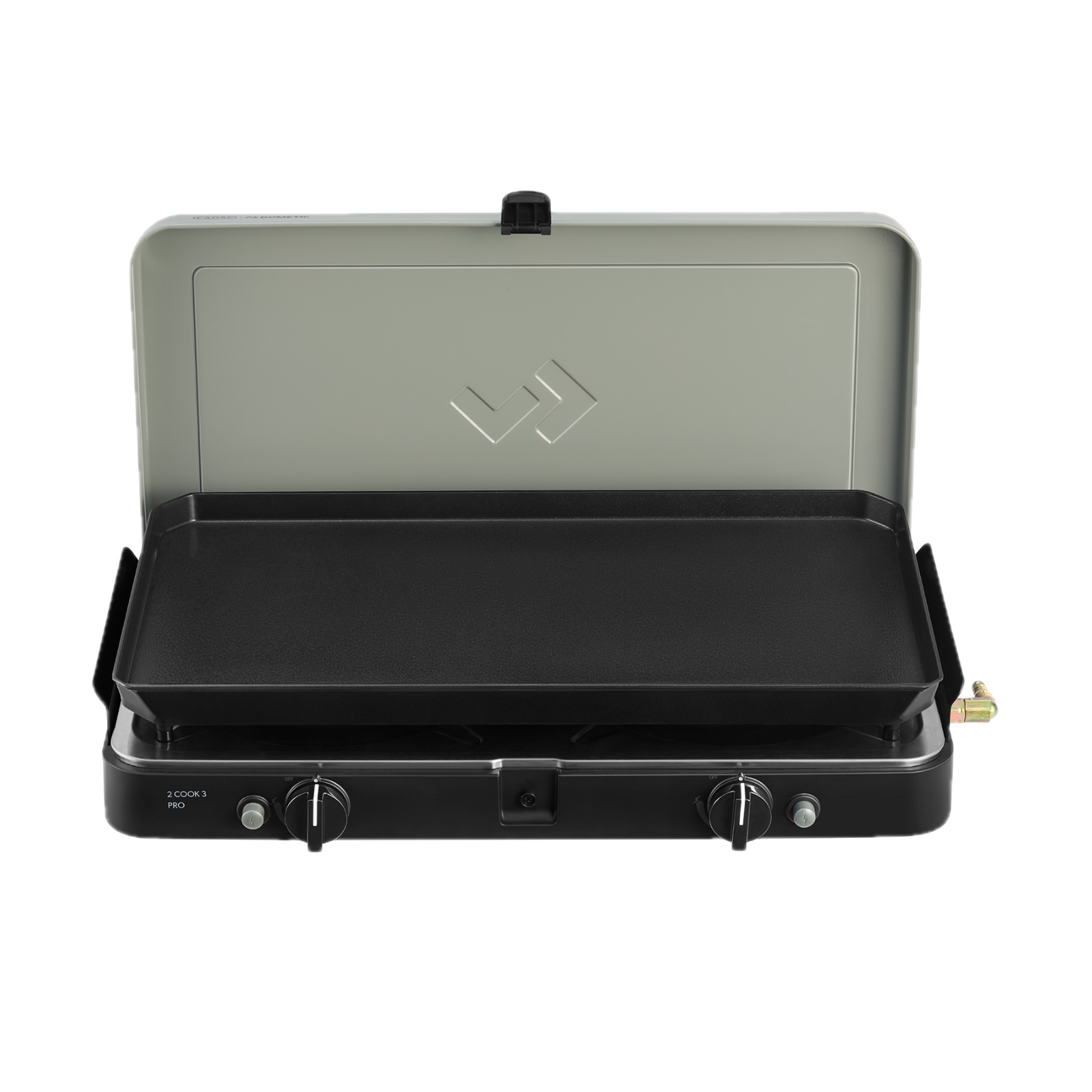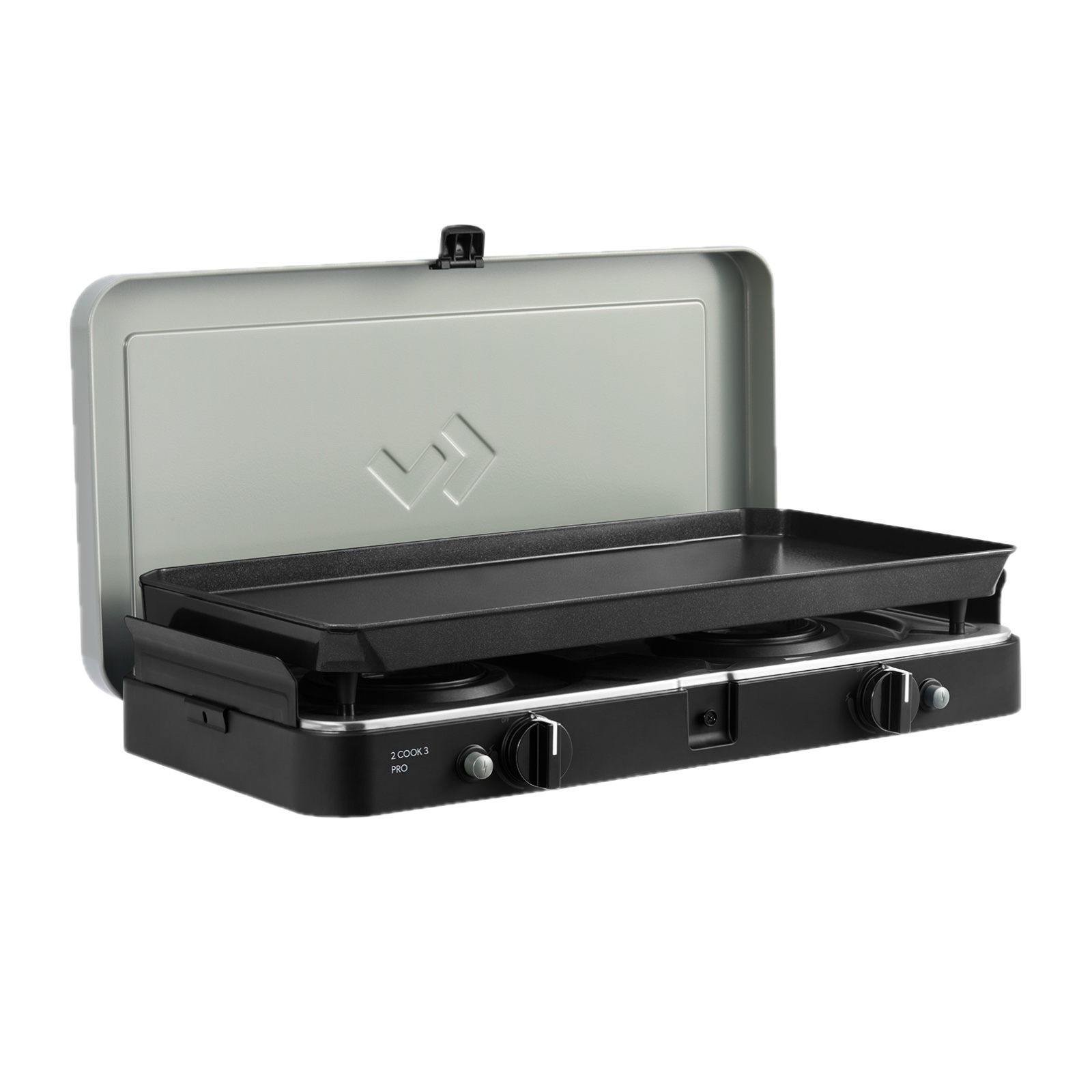 Der Cadac 2-Cook 3 Pro Plancha besitzt zwei separat regelbare Kochstellen, die jeweils mit einem 2,2 kW Edelstahl Brenner und einem emaillierten Topfständer ausgestattet sind. Zusätzlich ist eine XL Plancha im Lieferumfang enthalten. Damit lässt sich der vielseitige Gaskocher im Handumdrehen in einen echten Plancha-Grill verwandeln - ideal zur Zubereitung der verschiedensten Köstlichkeiten wie Fleisch- & Gemüsepfannen, Meeresfrüchte, Fisch, Burger Patties, Steaks, Pancakes und Spiegeleier.
