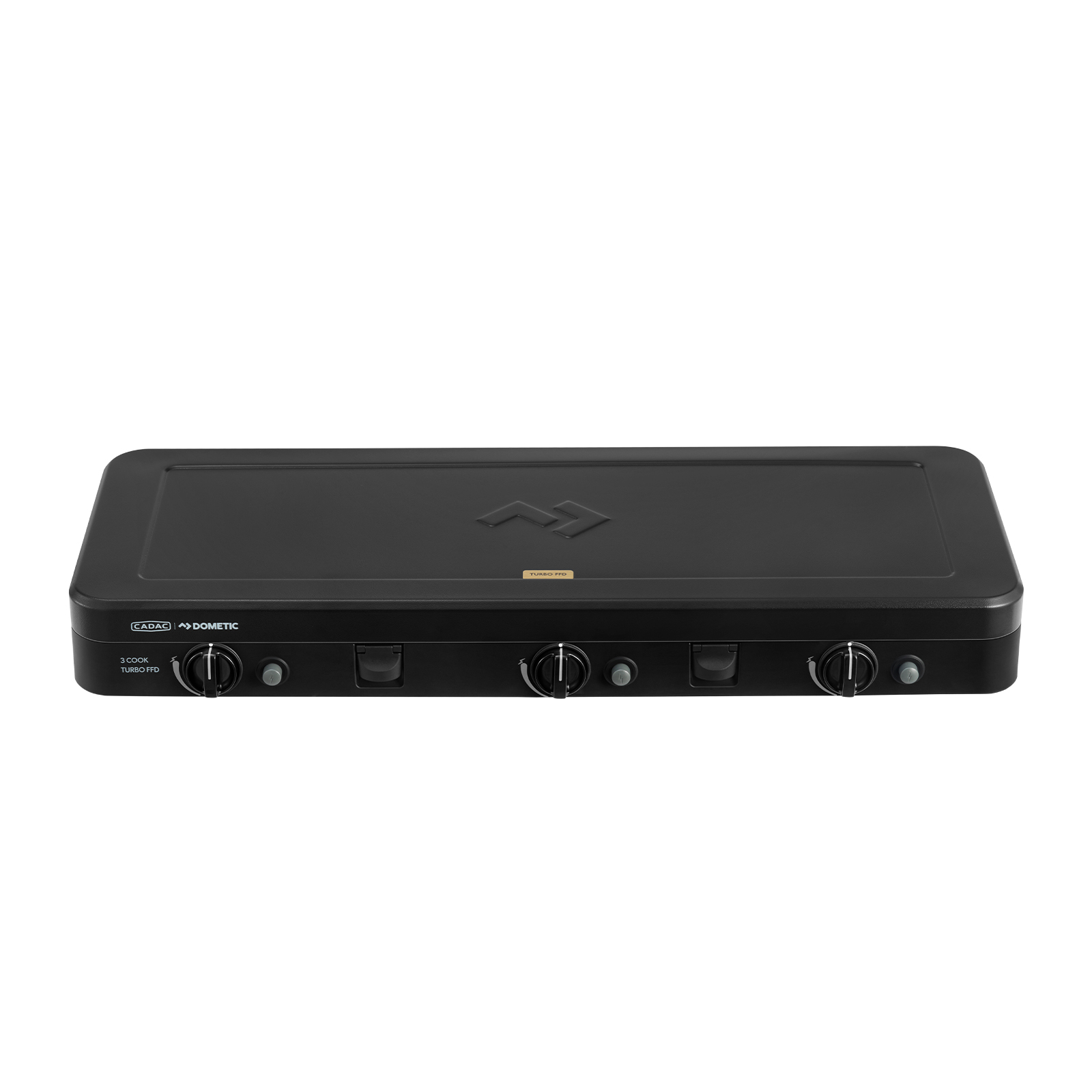 - Kompakter, leistungsstarker Gaskocher mit 3 separat steuerbaren Turbo-Gasbrennern