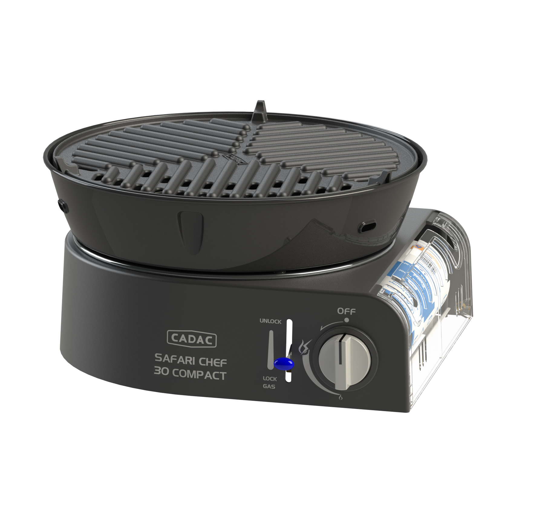 Der Safari Chef 30 Compact Deluxe ist ein ultrakompakter, leichter Gasgrill. Dieser Grill arbeitet direkt mit einer 227 g-Bajonettkartusche. Einfach die Gaskartusche in das Gerät einsetzen, einklicken und schon kann man mit dem Kochen oder Grillen beginnen. Ein ideales Gerät für Outdoor-Aktivitäten und Camping.