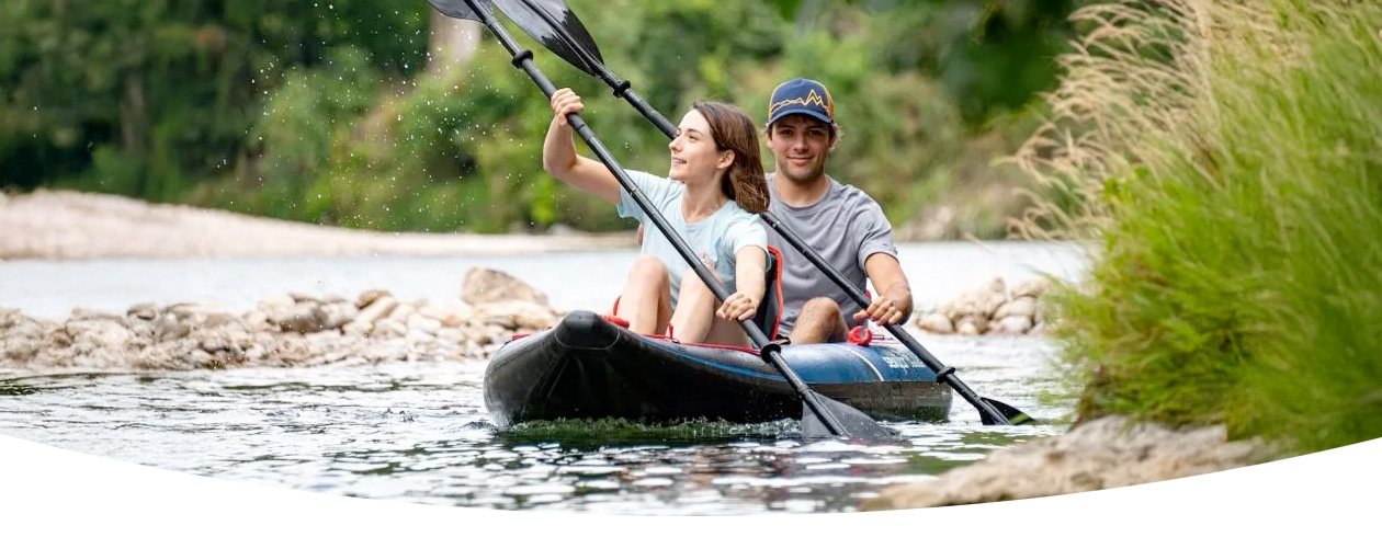 - mit vorgeformten Griffen (PaddleGrip™), die auch als Paddelhalter dienen